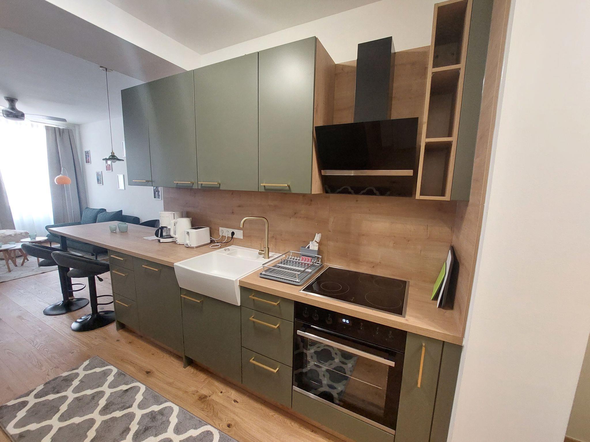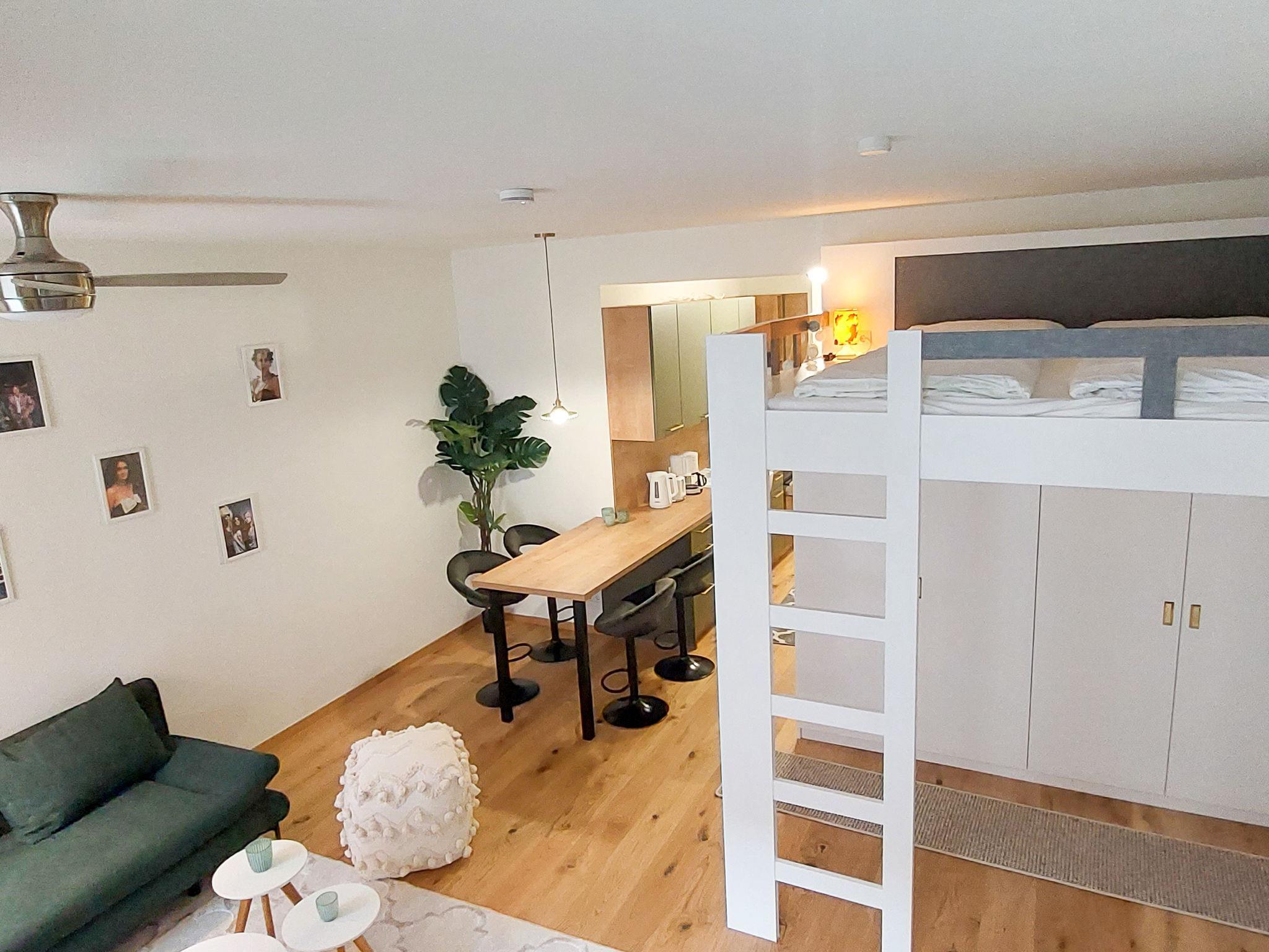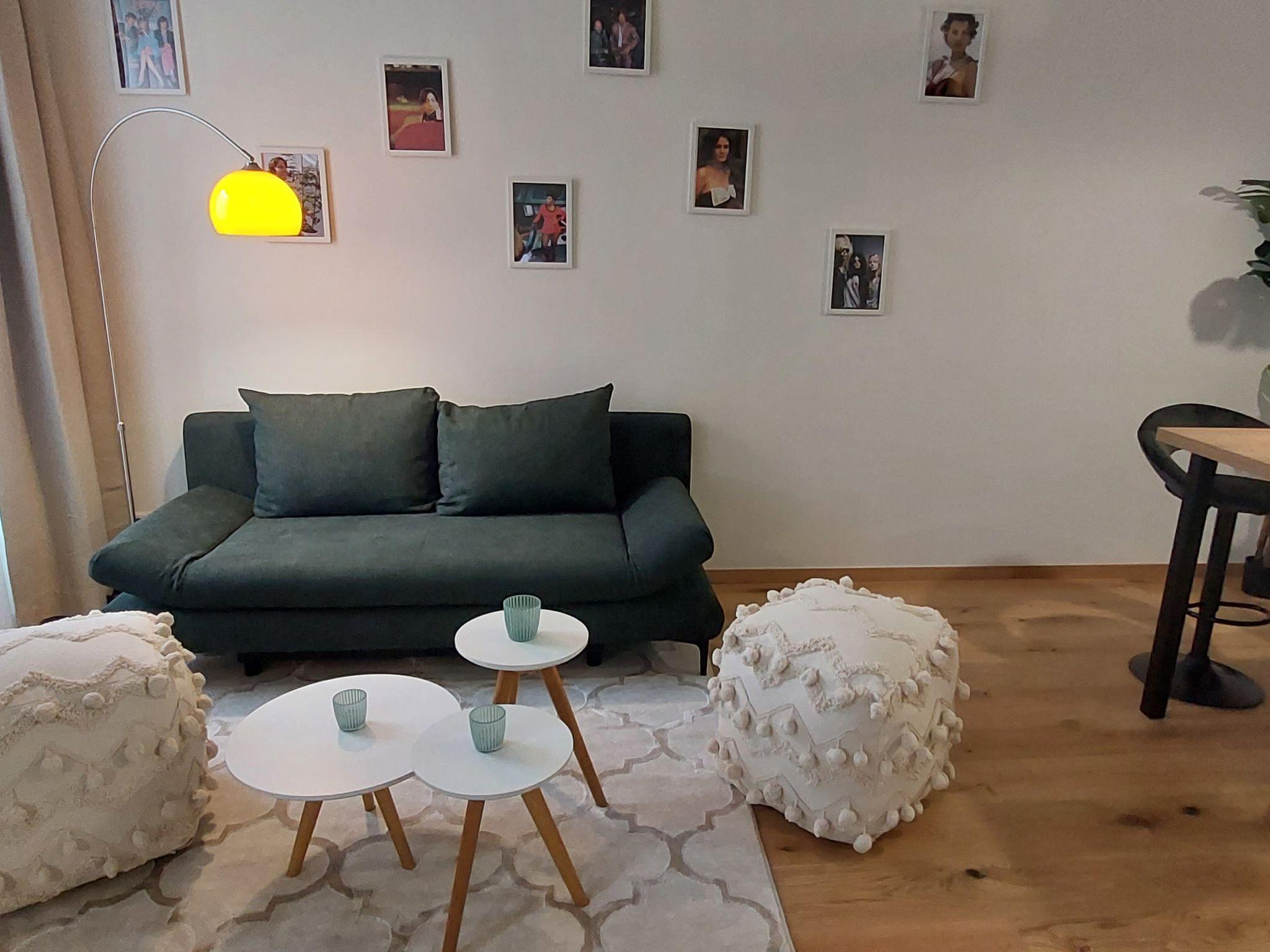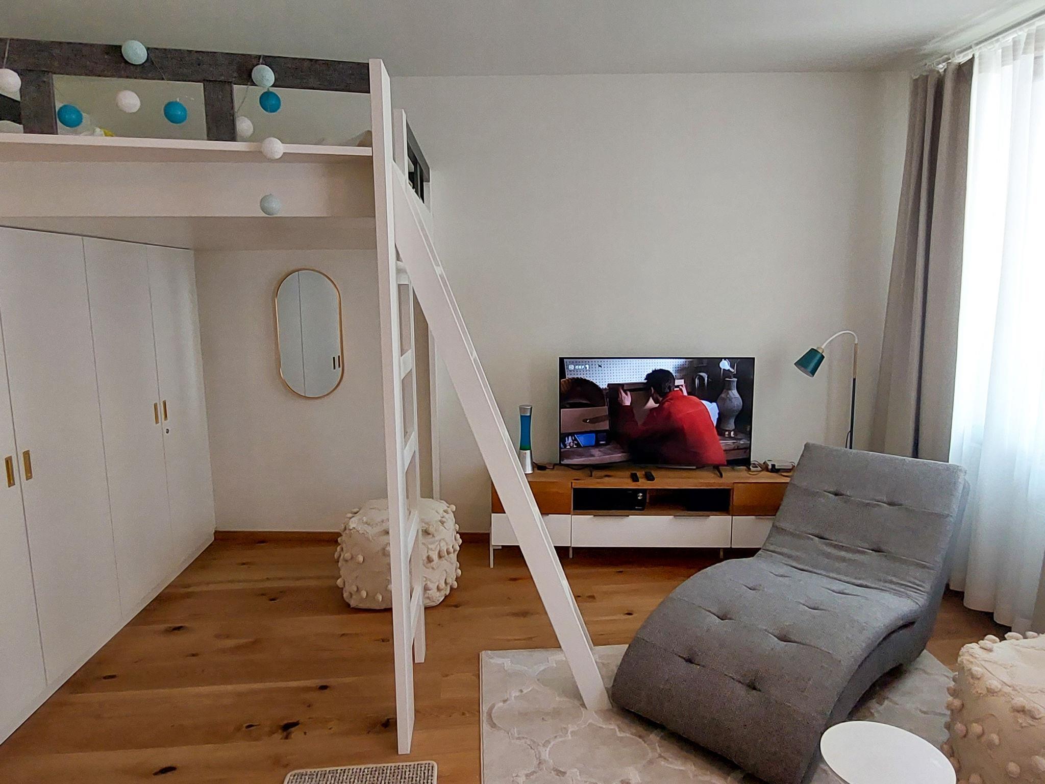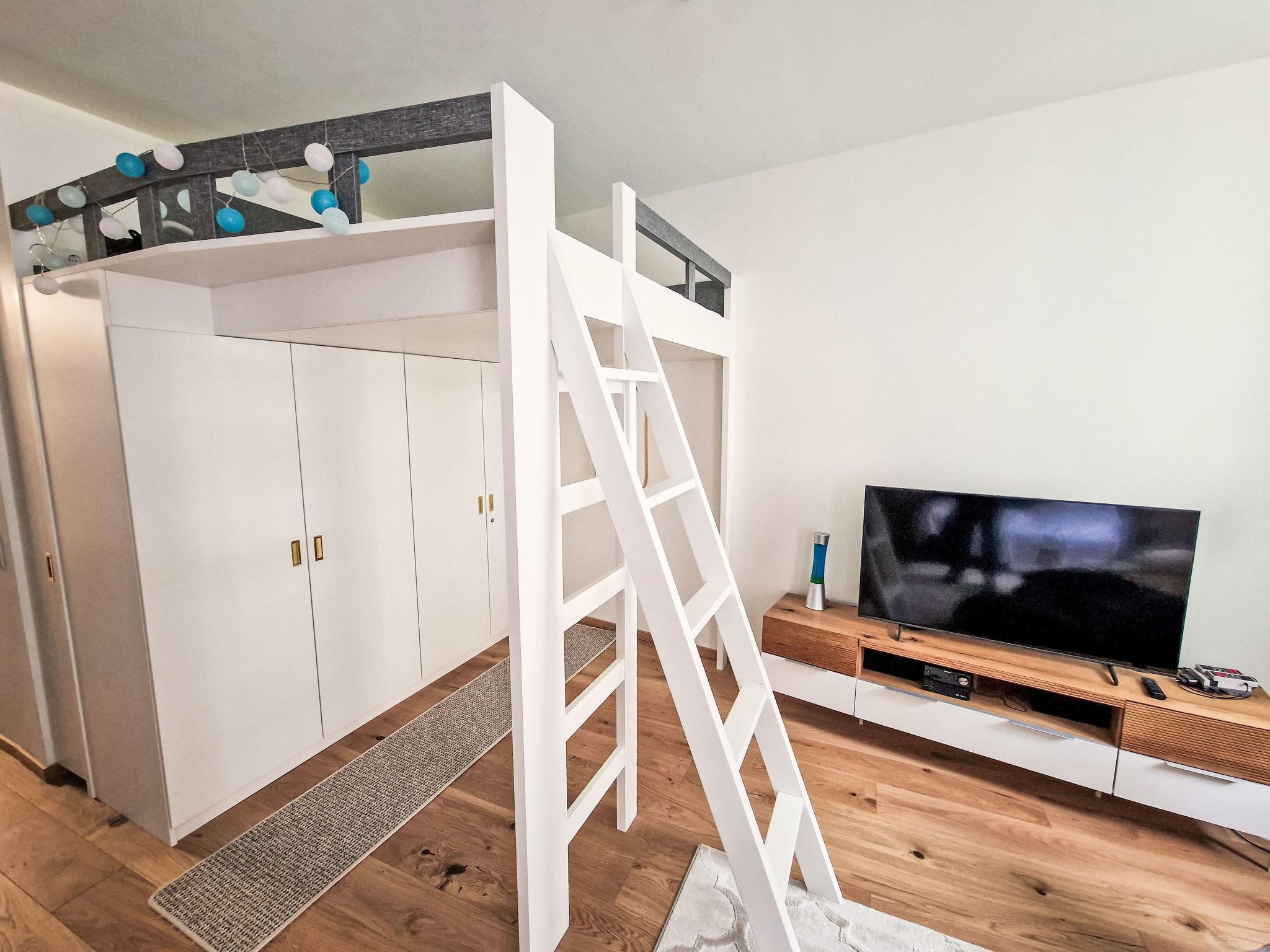 "Premium Apartment MariaHilf 1", 1-room apartment 42 m2 on 2nd floor. Object suitable for 4 adults. Spacious and bright, fully renovated in 2023, very comfortable and modern furnishings: entrance hall. Open living/sleeping room with 1 x 1 bunk beds (180 cm, length 190 cm), 1 pull-out bed (2 pers.), cable TV, flat screen, radio, CD-player and DVD. Open kitchen in the entrance (4 hot plates, dishwasher, toaster, kettle, electric coffee machine). Bath/WC. Heating. Wooden floors. Facilities: washing machine, iron, baby cot. Internet (WiFi, free). Please note: non-smokers only. Bunk beds (180cm wide) is a loft bed. Highspeed-Internet.