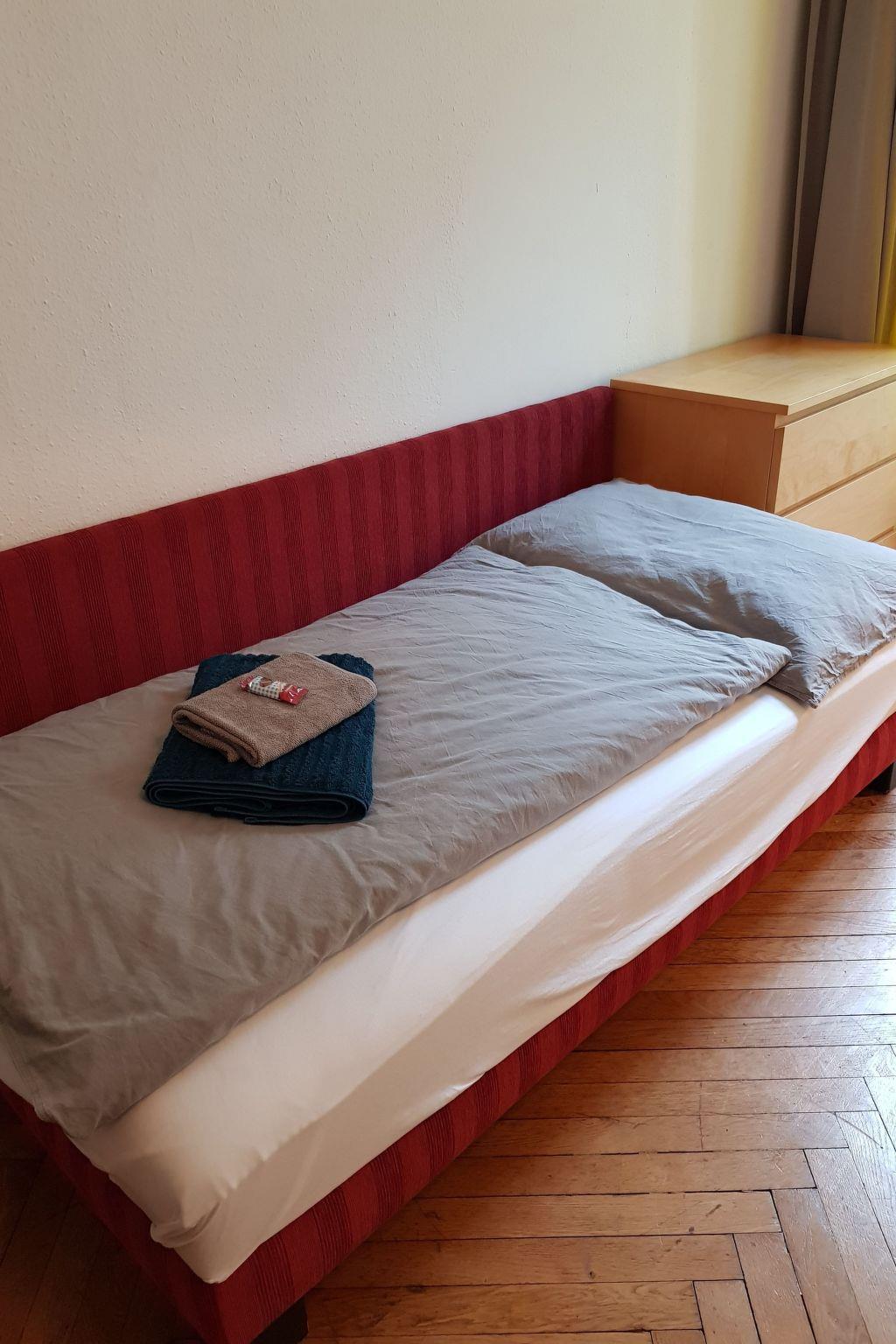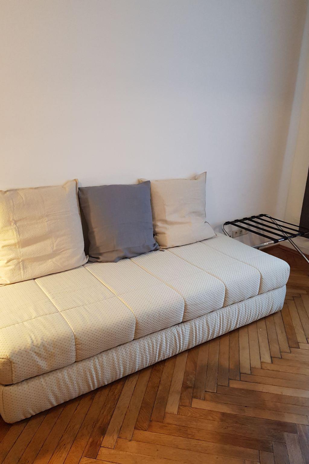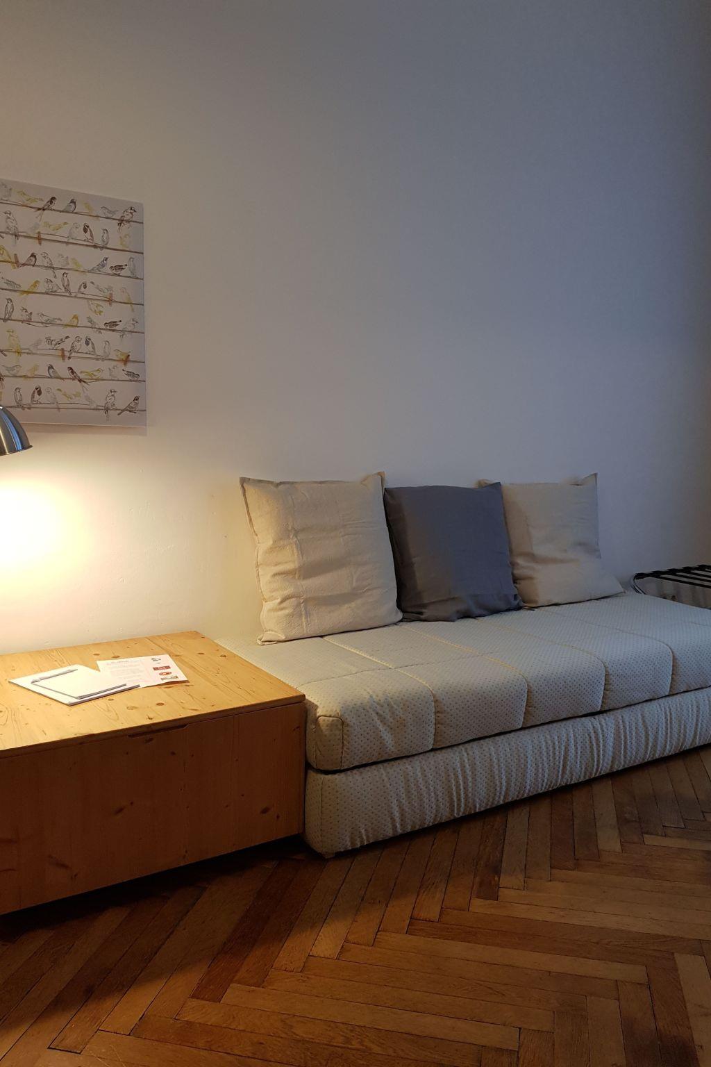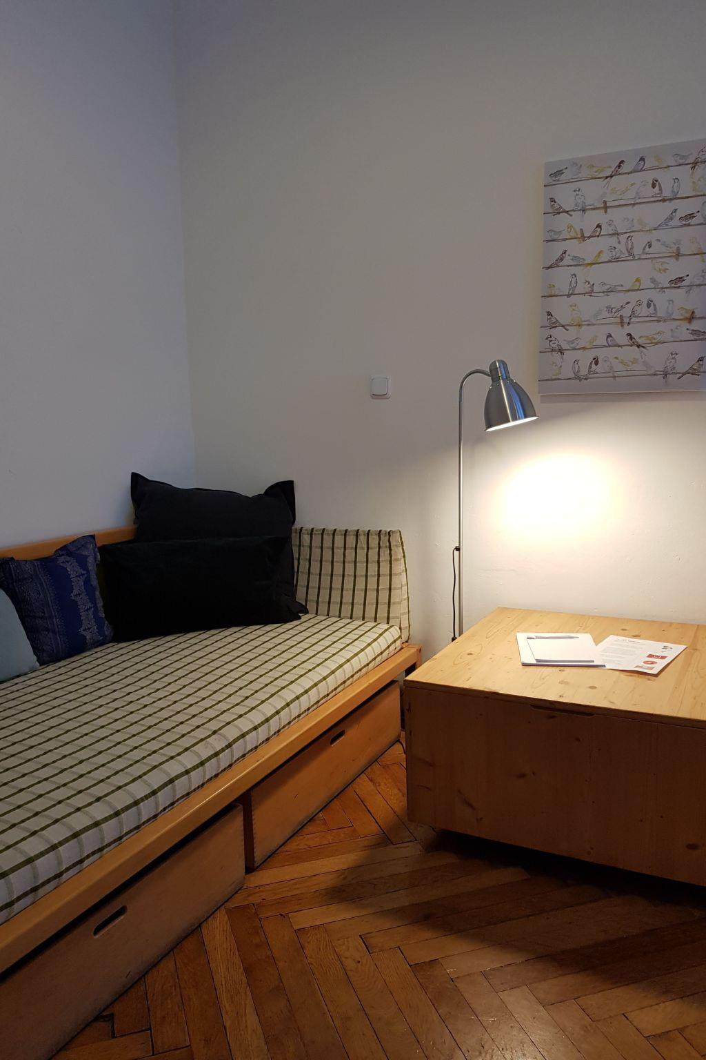 The accommodation has a fully equipped kitchen, 2 separate bedrooms and a living room/bedroom. As is usual in the old Viennese town houses, there is a bathroom with washbasin and bathtub. The WC is located in a separate room.