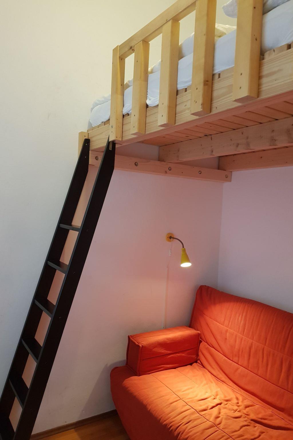 In the large bedroom there is a double bed 1.60 metres wide and a single bed, in the smaller bedroom there is a sofa bed 1.60 metres wide with a bunk bed above. This room is in a quiet location with a view of the inner courtyard.