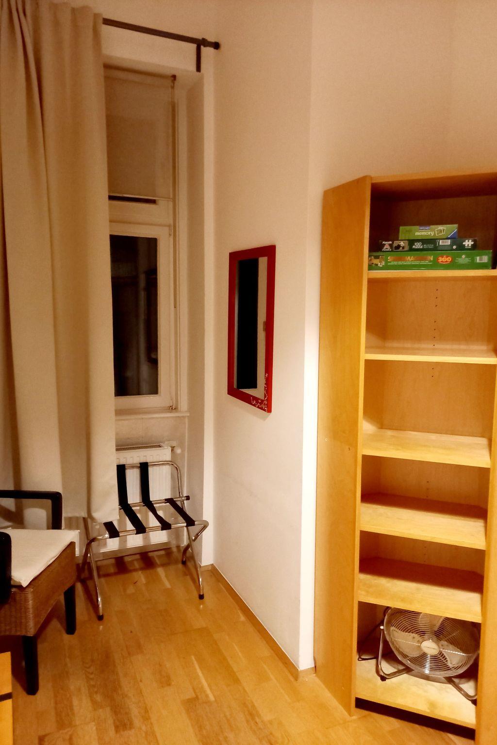 Cosy flat in an old building with a quiet bedroom with a view of the inner courtyard, kitchen, bathroom and WC, in a traditional Viennese townhouse built around 1903. The flat is on the 2nd floor. There is a lift which can be reached after 7 steps.