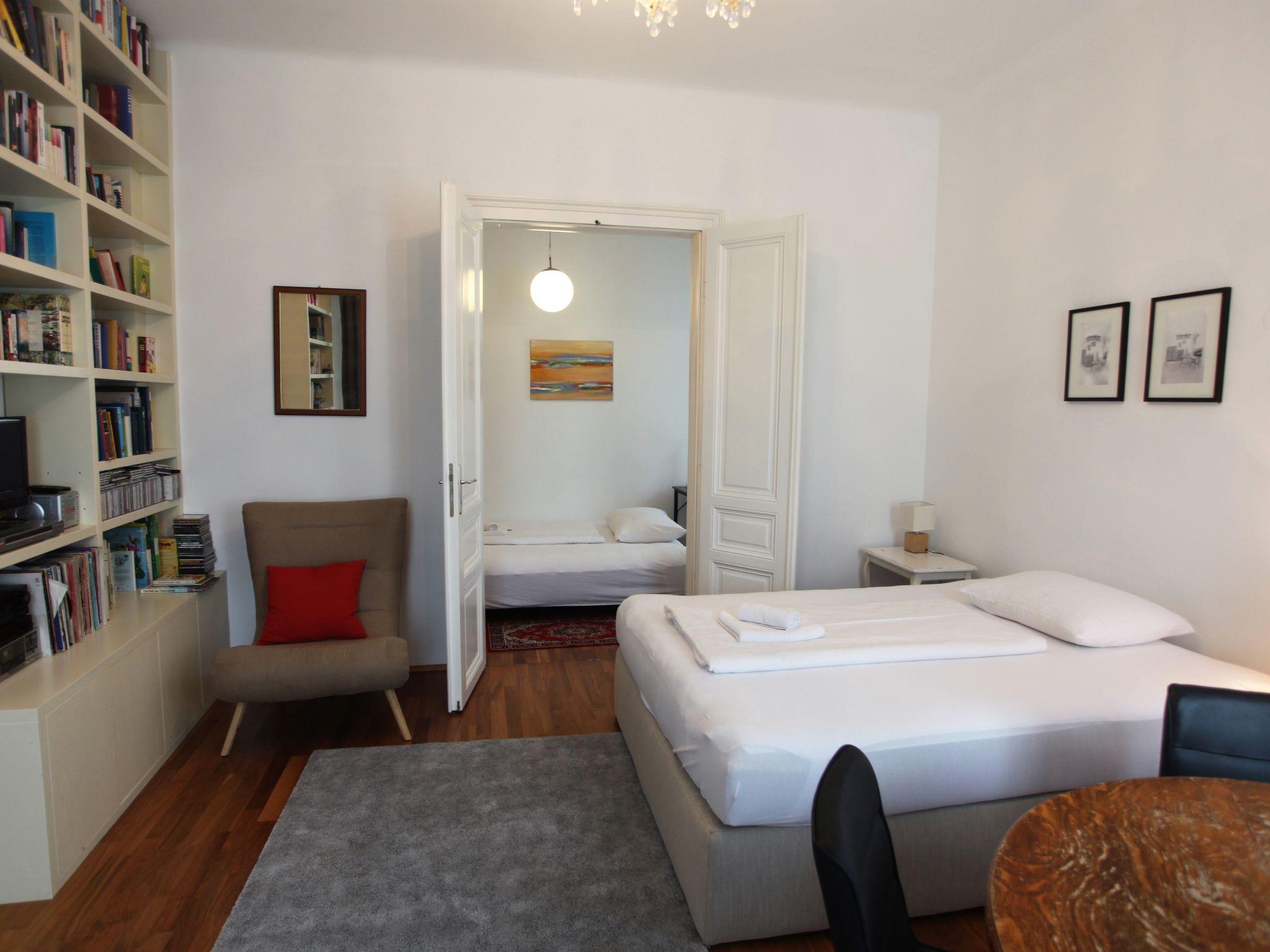 Unusual, large flat on the Augarten. You live in a central location in a typical Viennese Gründerzeit house from 1890. The house is in the 20th district (Brigittenau) in a quiet alley directly on the Augarten - the oldest and possibly most beautiful baroque park in Vienna. All shops for daily needs within 5 minutes walking distance. Three bathrooms (2x bathtub, 1x shower), 2 WCs, small balcony overlooking the Augarten, fully equipped kitchen and a library.
