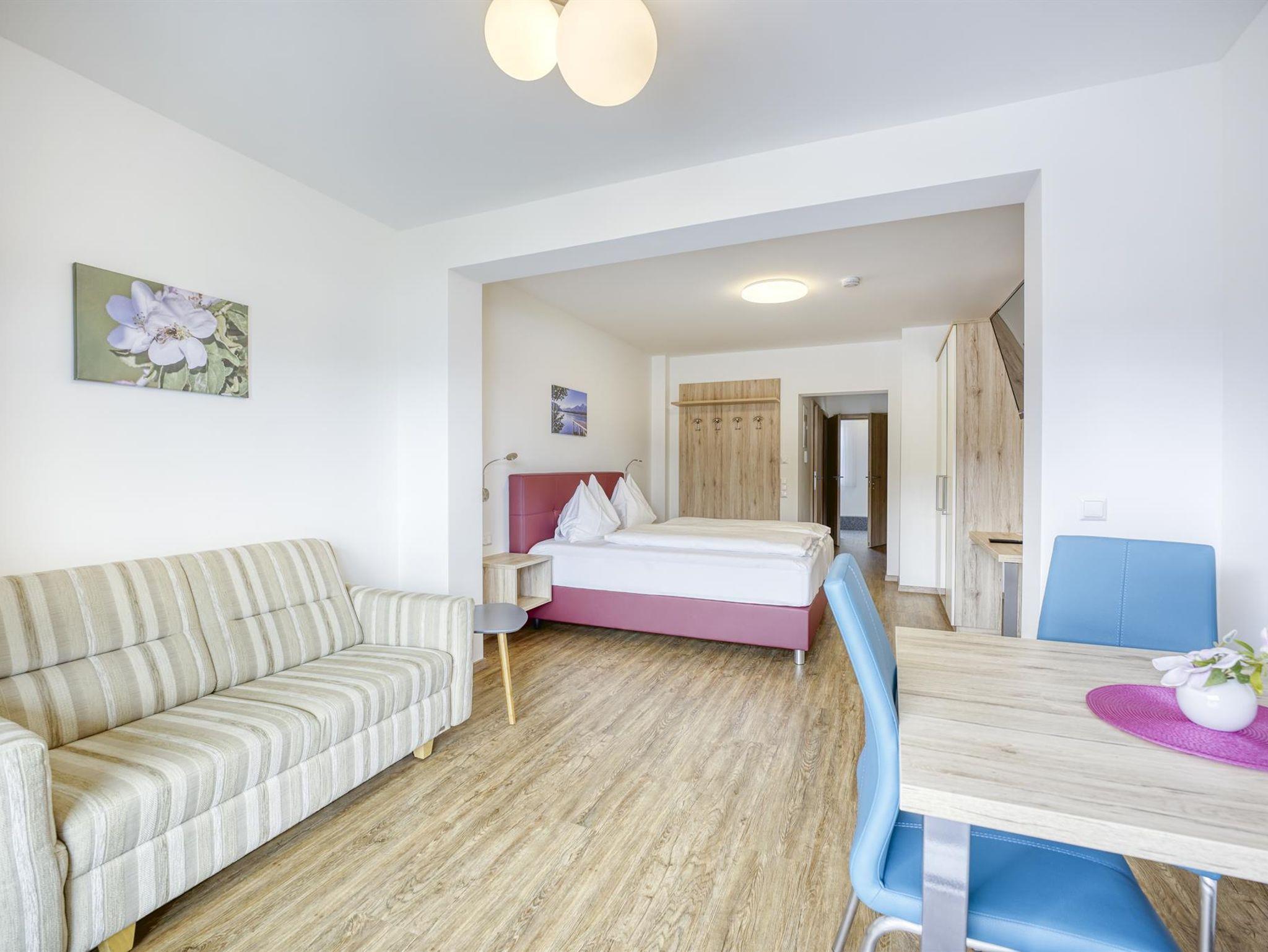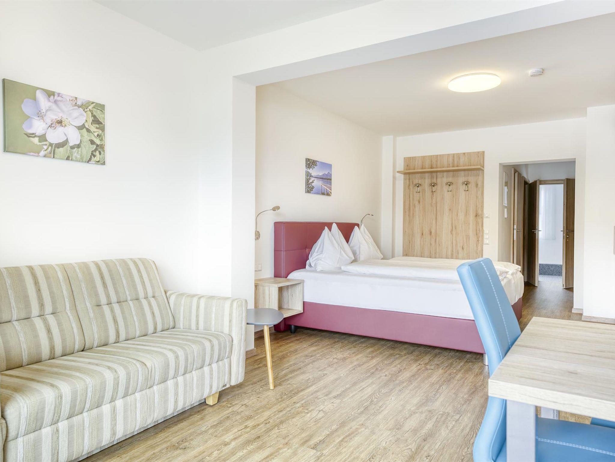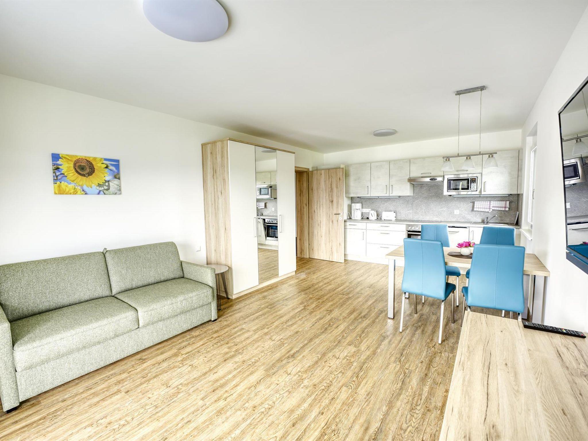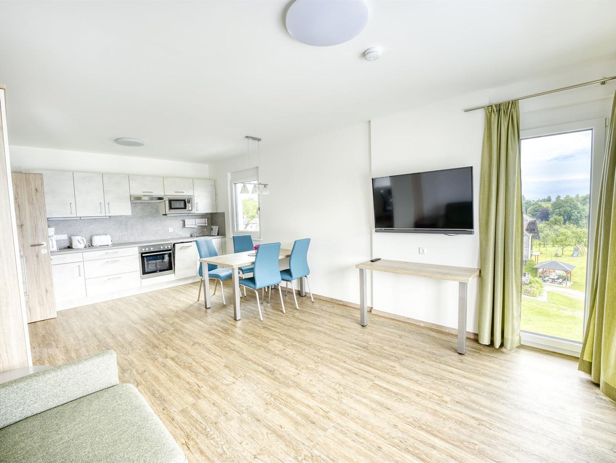 Unsere Ferienwohnung im Haus 1, ist mit 1 Schlafraum, 1 Wohnschlafraum, Küchenzeile - komplett eingerichtet mit Geschirrspüler Backrohr, Ceranfeld, Wasserkocher, Toaster und Kaffeefiltermaschine, Dusche, WC, Sat-TV, gratis WLAN und Balkon. Bade- und Handtücher, Bett und Tischwäsche sind vorhanden. Eigener Badestrand!