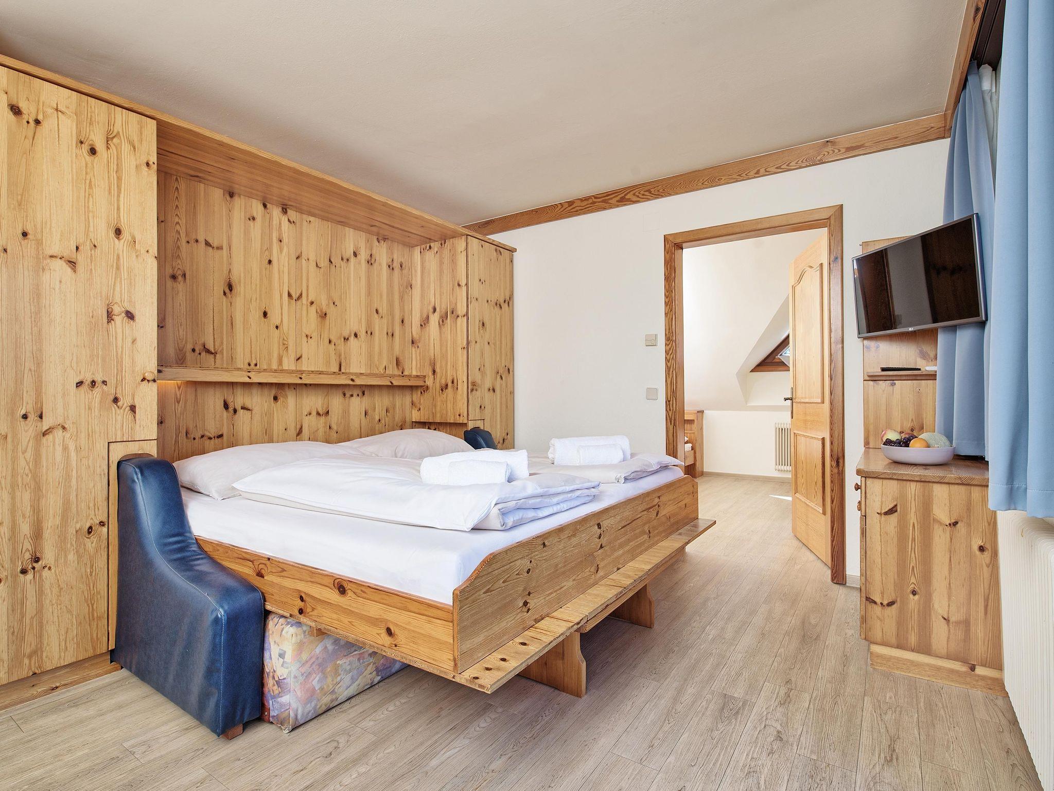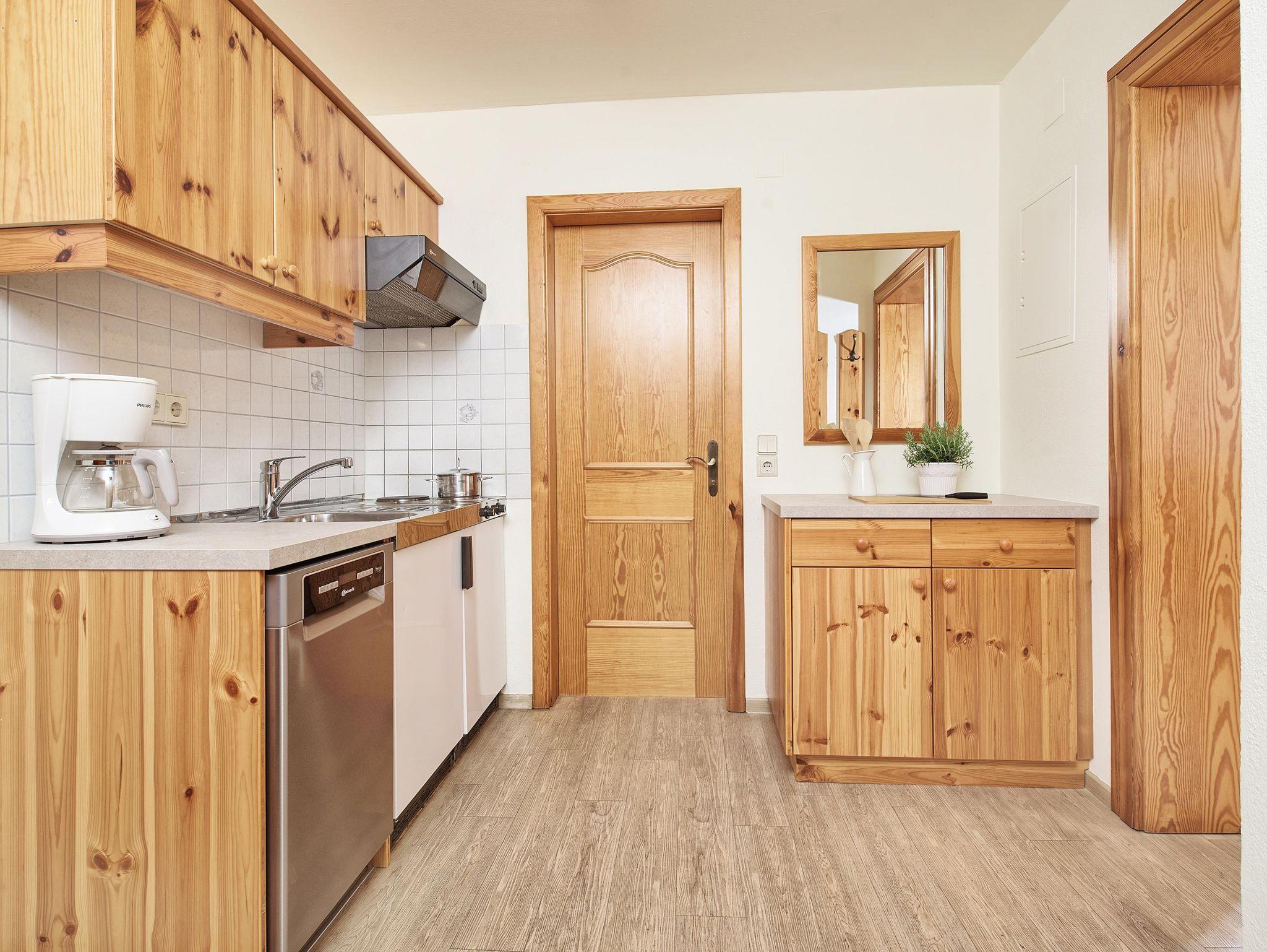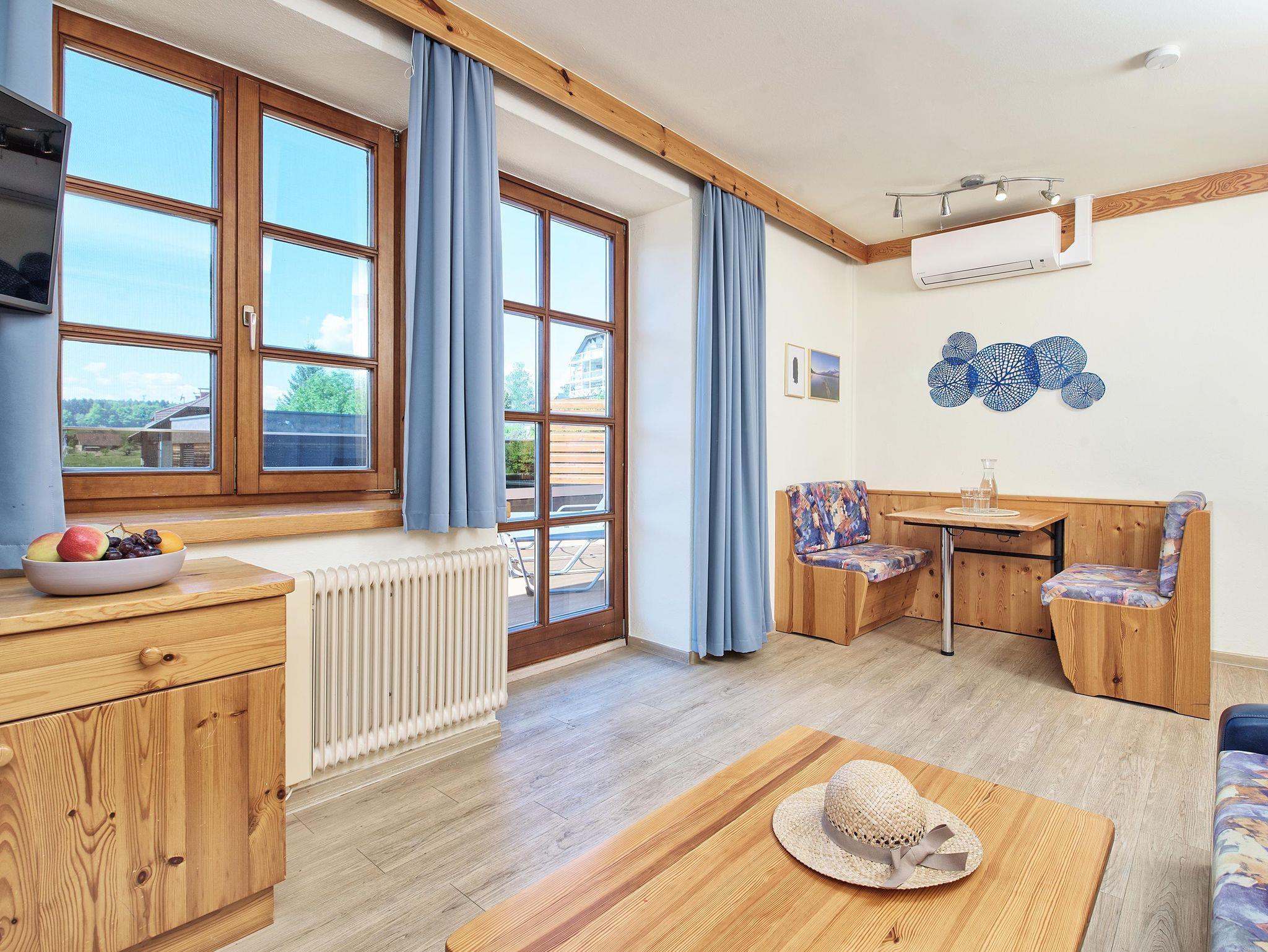Gemütliches Appartement mit 42 m2 im 1. Stockwerk mit Balkon. Wohnbereich mit ausklappbarem Schrankbett und ein separates Schlafzimmer mit zwei getrennten Betten, SAT-TV, Bad mit zwei Waschbecken und Dusche, WC getrennt, Kochnische mit Geschirr für maximal 4 Personen, Balkon in südwestliche Richtung.