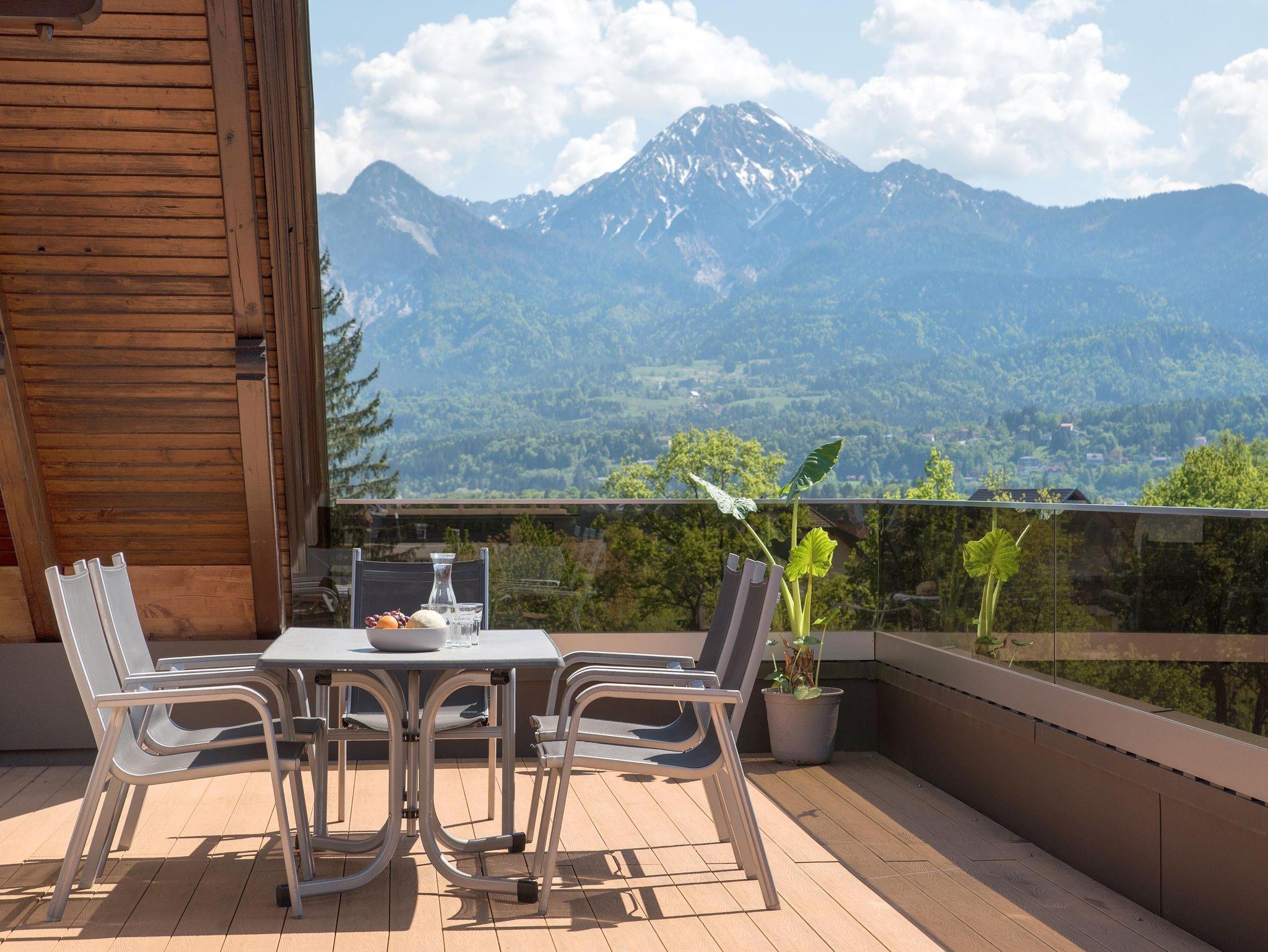 Unser familienfreundliches Appartementhaus Drobollach liegt in ruhiger, sonniger Lage mit einem sehr großen Kinderspielplatz und Blick auf den Faaker See und die Gebirgskette der Karawanken.