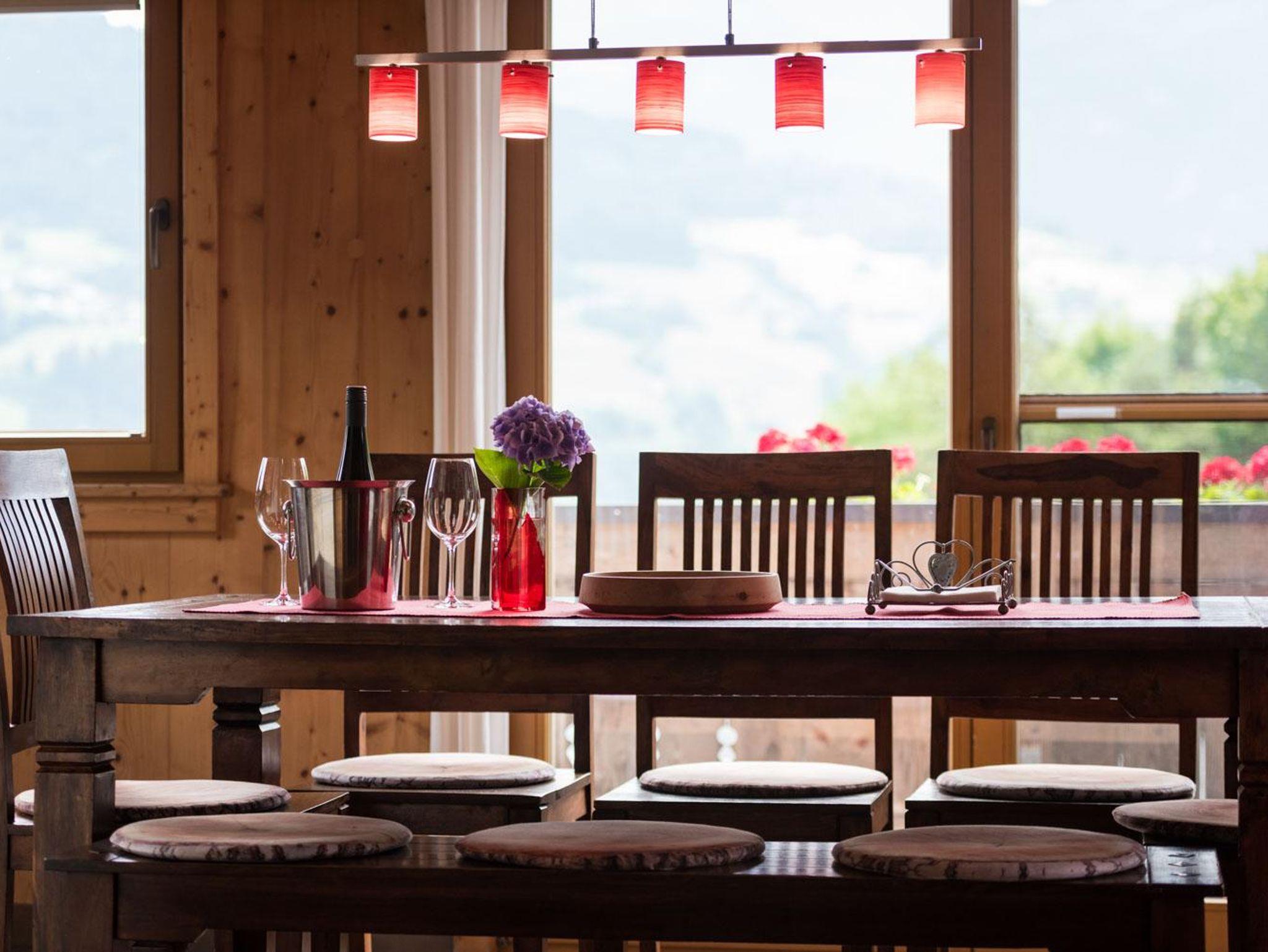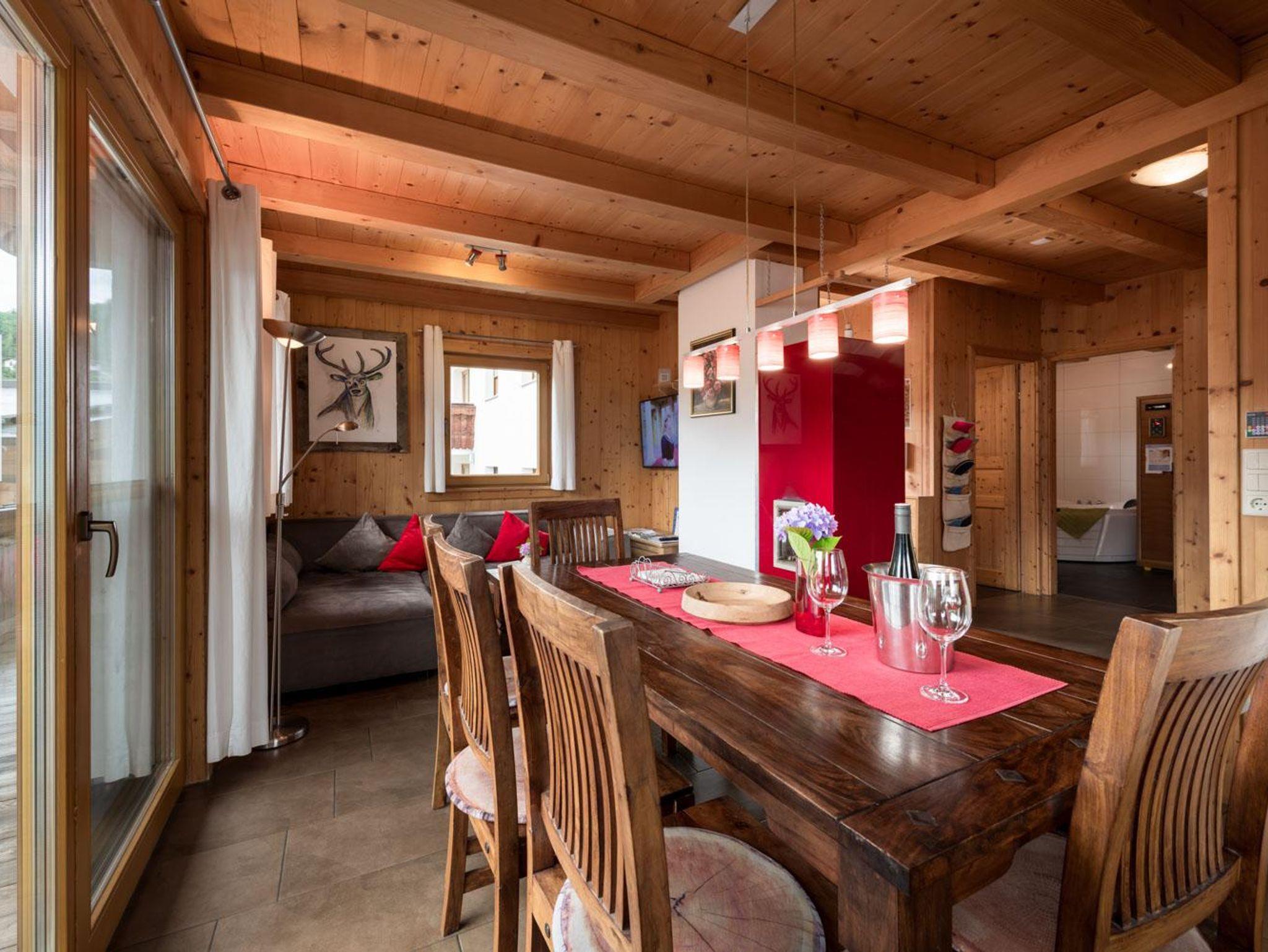 Das Chalet verfügt über eine voll ausgestattete Wohnküche mit Designer-Kachelofen mit Computersteuerung, 4 Schlafzimmer, 2 Bäder, separates Gäste-WC sowie eine 40m² große Terrasse.