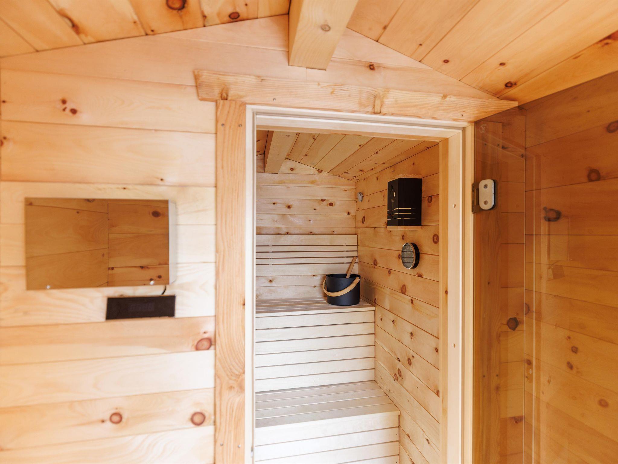 Das Chalet Naturblick (50 m²) für bis zu 5 Personen verfügt über eine top-ausgestattete Küche, gemütlichen Wohnbereich mit Essecke und Schlafcouch, zwei Doppelzimmer, eine Dusche und WC, einer eingezäunten Terrasse sowie einem Zirben Saunahäuschen.