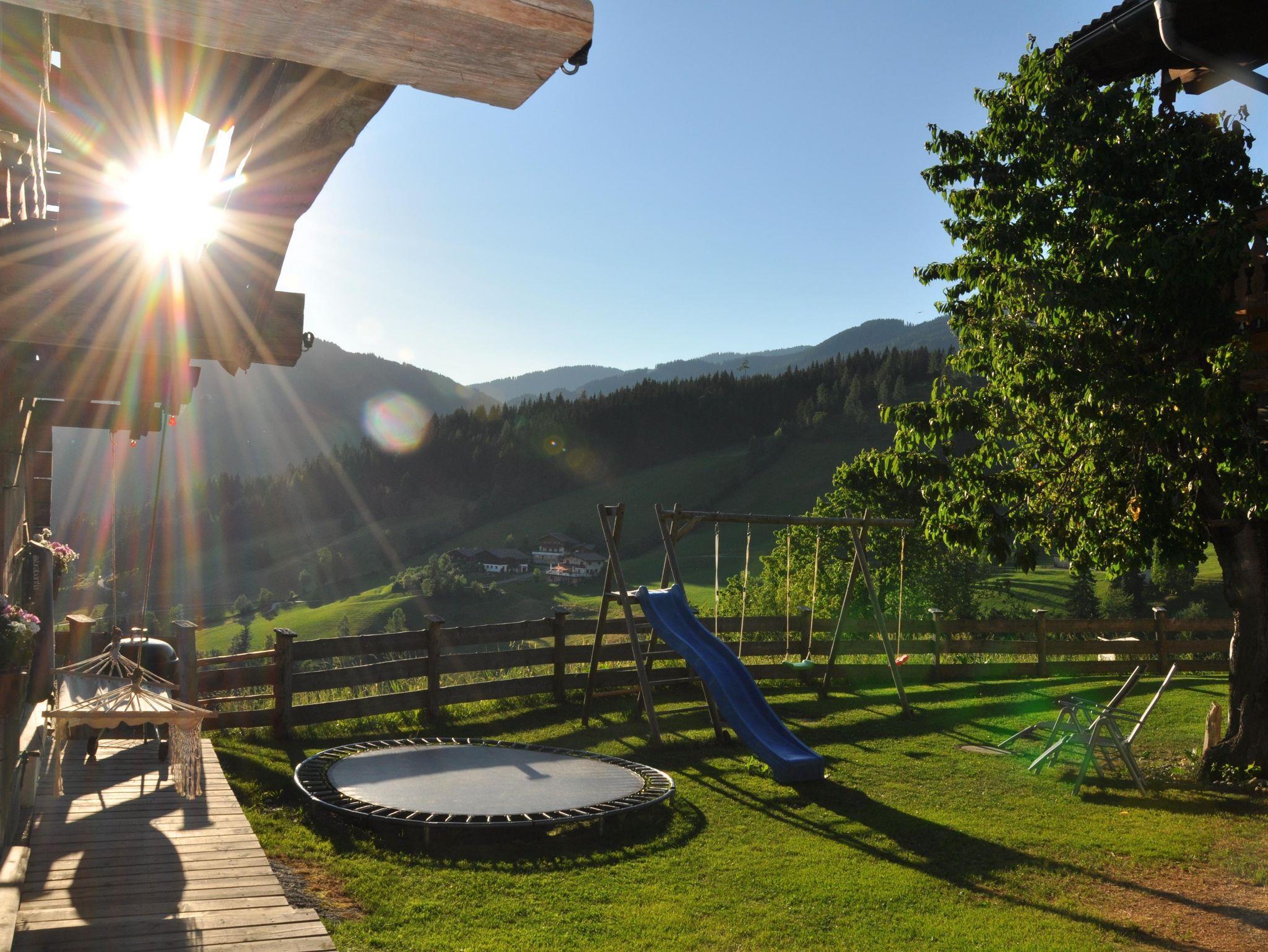 Die Kinder toben am Spielplatz mit Trampolin und Tischttennis oder erkunden die Umgebung mitsamt unseren Tieren!