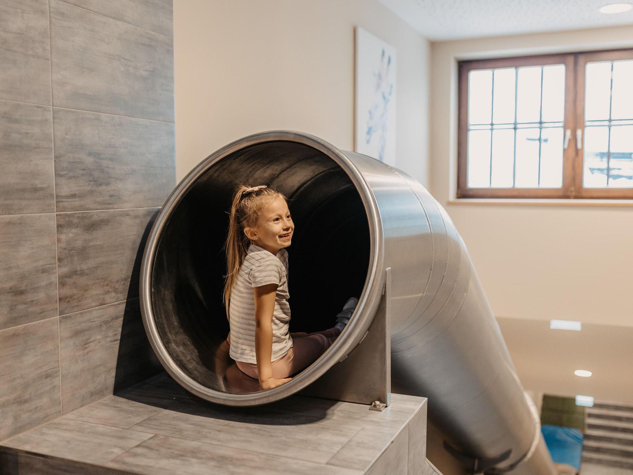 • Indoor Family Pool mit beheiztem Außenschwimmbecken, Kinderwasserrutsche, Textilsauna