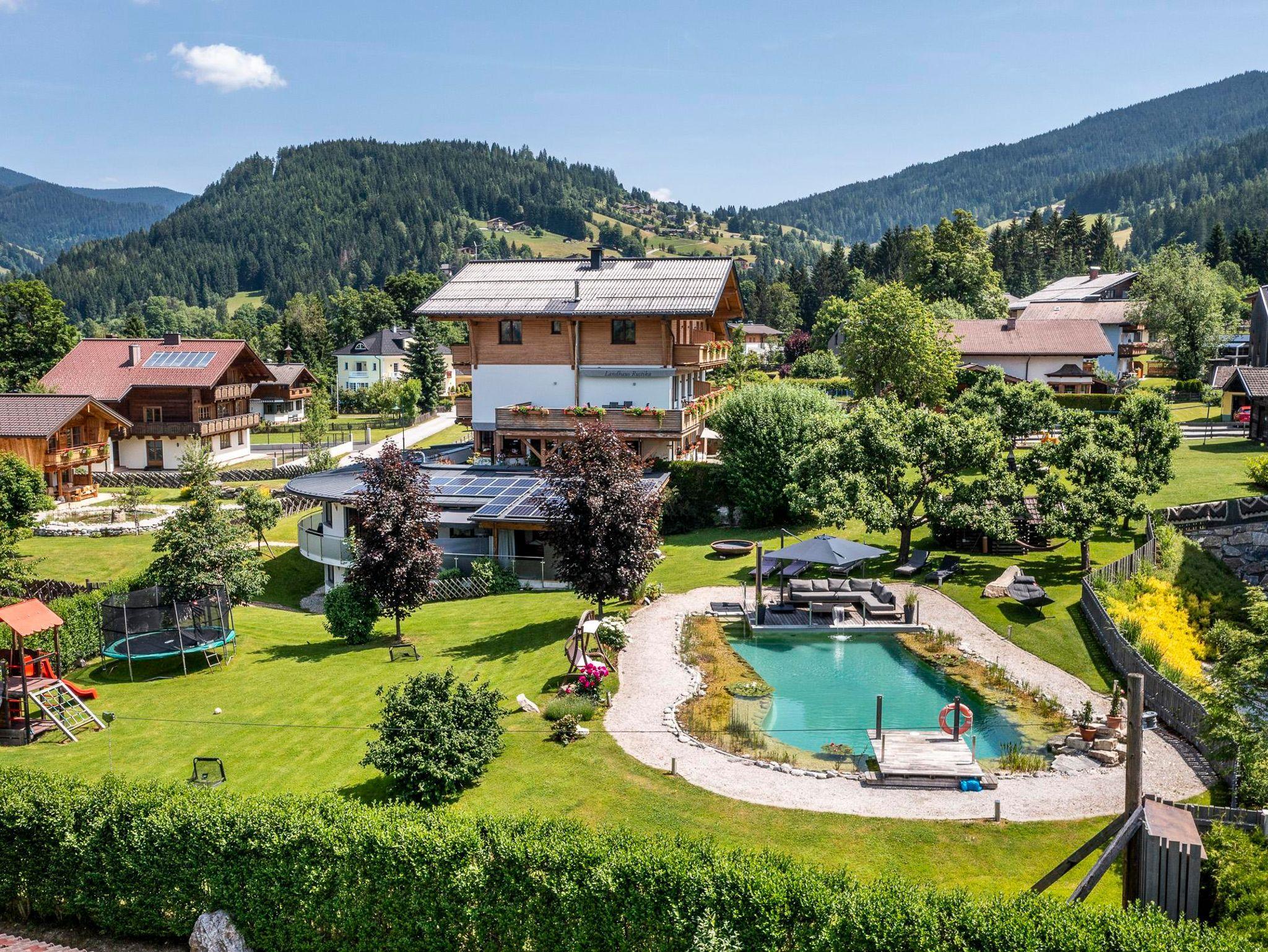 Das Landhaus Rustika befindet sich in ruhiger Lage am Sonnenplateau von Wagrain - Kirchboden. Die großzügige Gartenanlage mit Naturschwimmteich 10 x 11 Meter, Kneipppfad, Spielplatz, Tischtennis, Fischteich, Streichelzoo und Liegewiese lädt zum Entspannen und Erholen ein.