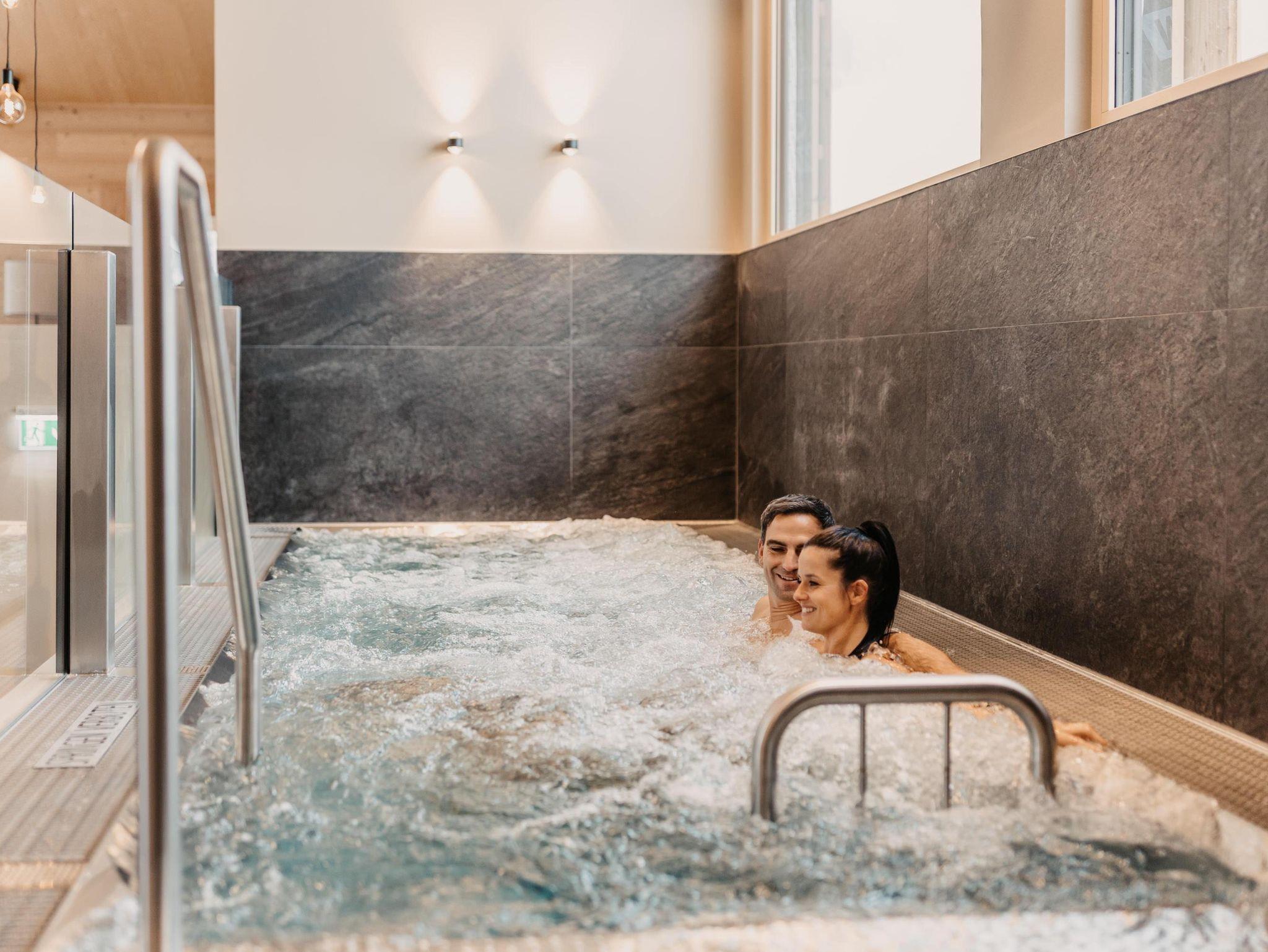 • Indoor Family Pool mit beheiztem Außenschwimmbecken, Kinderwasserrutsche, Textilsauna