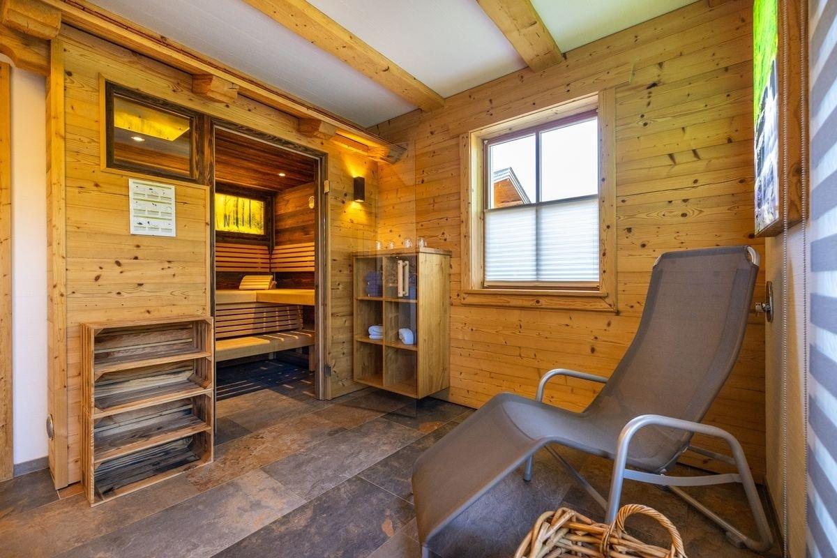 Eigener Wellnessbereich mit Sauna, Dampfdusche, Ruheraum & Außenbadewanne (EG)