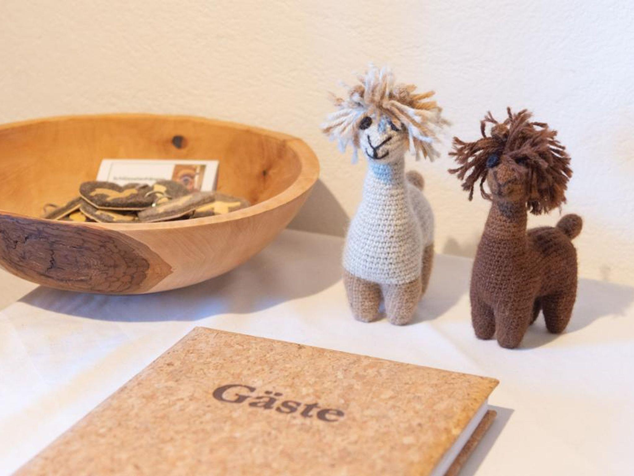 Sanftmütige Alpakas leben auf dem Hof und können bei geführten Wanderungen begleitet werden. Zudem sind hochwertige Alpakaprodukte wie Decken, Schuheinlagen und Wolle erhältlich.