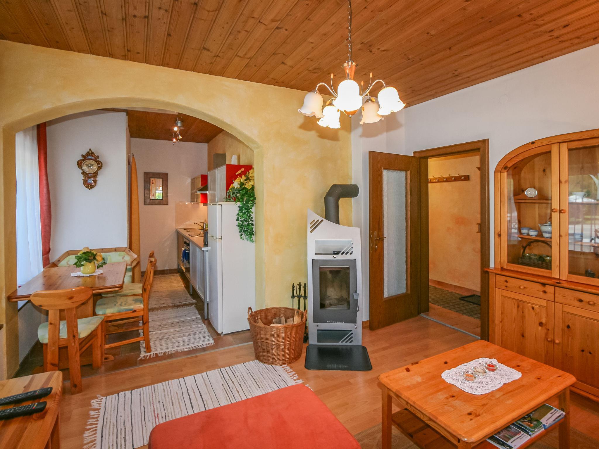 "Peter", 2-room apartment 50 m2, on the ground floor. Bright, beautiful and cosy furnishings: entrance hall. Living/sleeping room with 1 double sofabed, Scandinavian wood stove, dining table and satellite TV (flat screen), DVD. 1 room with 1 french bed (140 cm). Kitchenette (oven, 4 ceramic glass hob hotplates, toaster, microwave). Bath/shower/WC. Beautiful view of the mountains and the countryside. Facilities: Internet (WiFi, free). Please note: suitable for families. Non-smokers only.