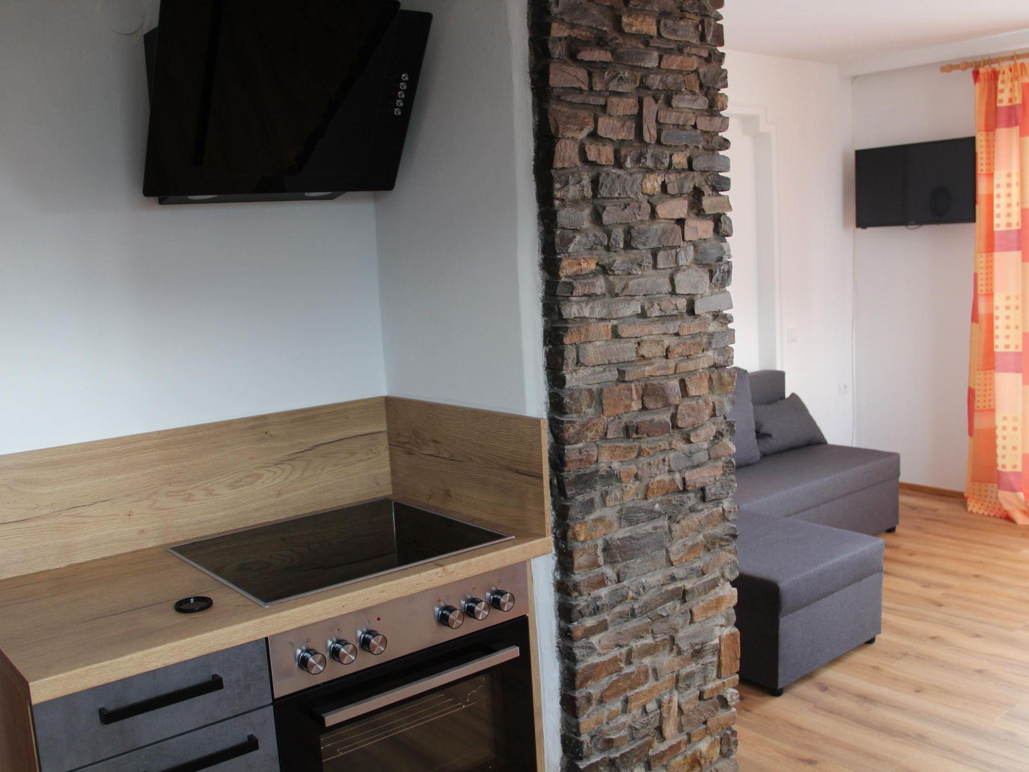 Die ca. 75m² große Ferienwohnung befindet ist im Erdgeschoss mit direktem Zugang zum Garten. Die Wohnung verfügt über zwei Doppelzimmer, eine Wohnküche, Bad mit Dusche und separatem WC.