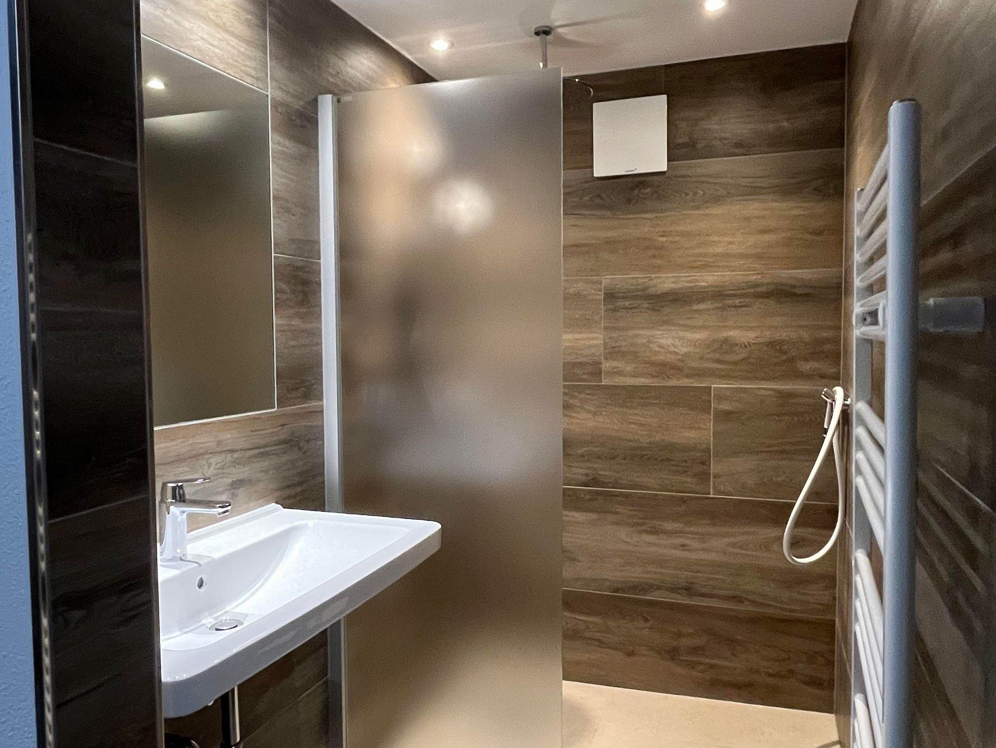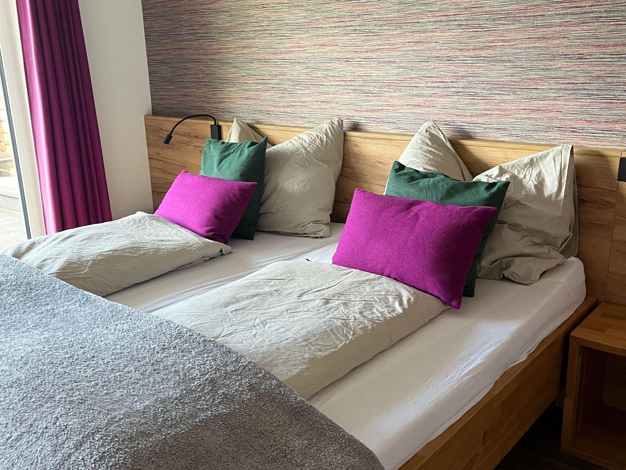 Die Appartements überzeugen mit hellen, lichtdurchfluteten Räumen, einem offenen Koch-, Ess- und Wohnbereich mit gemütlicher Schlafcouch sowie direktem Zugang zu Balkon oder Garten. Von dort hast du einen traumhaften Blick auf die umliegende Bergwelt. Das großzügige 3-Zimmer-Appartement bietet dir zwei Schlafzimmer – eines davon mit Etagenbett – und ein modernes Badezimmer mit Walk-In-Dusche.