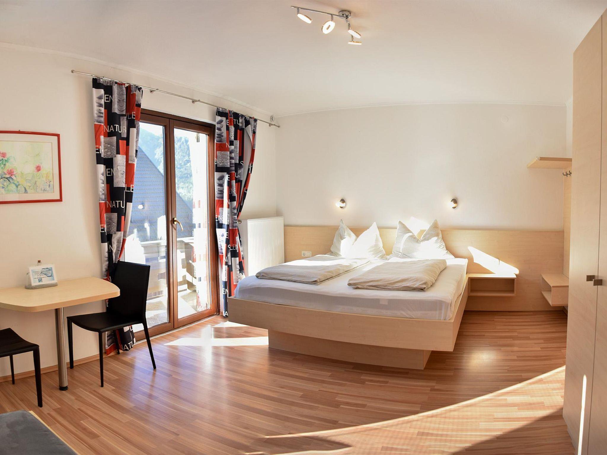 Ferienwohungen mit ca. 48 m² Wohnfläche für 1 bis 4 Personen. Jeweils 1 Schlafzimmer, Wohn-/Schlafraum mit Ausziehbetten, Kochnische, Essecke, Kochgeschirr, Mikrowelle, Wasserkocher, Balkon mit Seeblick, Bad oder Dusche/WC, Radio, Sat-TV, Safe und Fön.