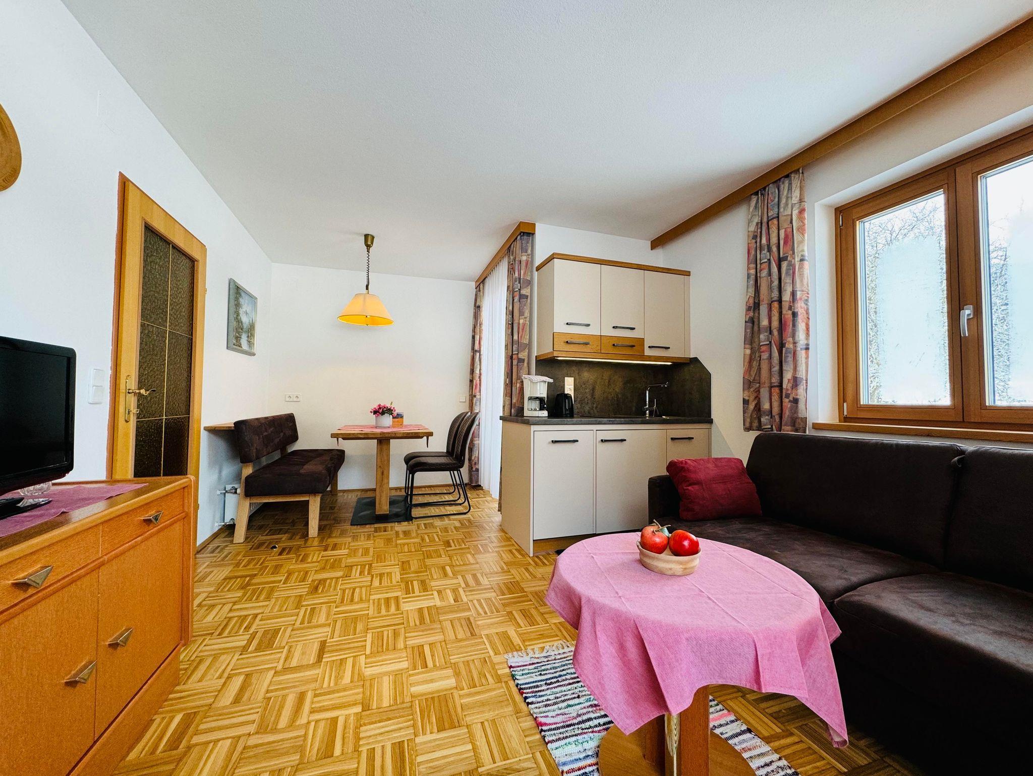 Die Wohnung befindet sich im 2. Stock unseres Haupthauses und bietet einen herrlichen Blick auf den westteil des Weissensees.Der Balkon des Appartments lädt zum Genießen traumhafter Sonnenuntergänge ein.Es gibt einen Wohnraum mit Essecke, Küchenzeile, gemütlichen Schlafcouch im Doppelbettformat und ein Schlafzimmer mit Doppelbett.Dusche und WC sind, getrennt. Handtücher, Geschirr und Bettwäsche sind vorhanden.Parkplatz befindet sich direkt beim Haus.
