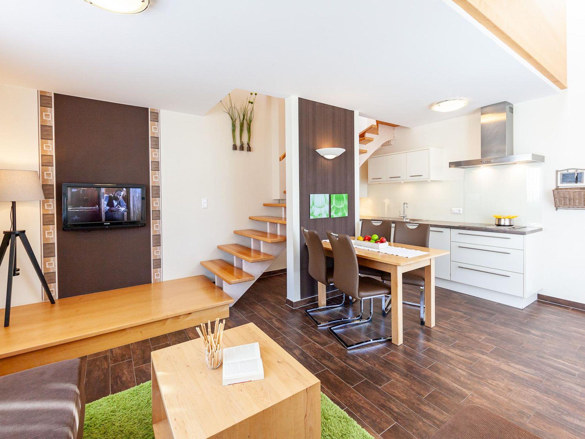 Diese Ferienwohnung im Haus Wiesengrund - gleich gegenüber dem Seehaus - erstreckt sich über zwei Etagen und bietet ein großzügiges und durchdachtes Raumkonzept. Im oberen Geschoss befinden sich zwei gemütliche Schlafräume, wobei sich auf Wunsch die Betten in einem der Zimmer auch in zwei Einzelbetten trennen lassen, um noch flexiblere Schlafmöglichkeiten zu schaffen.