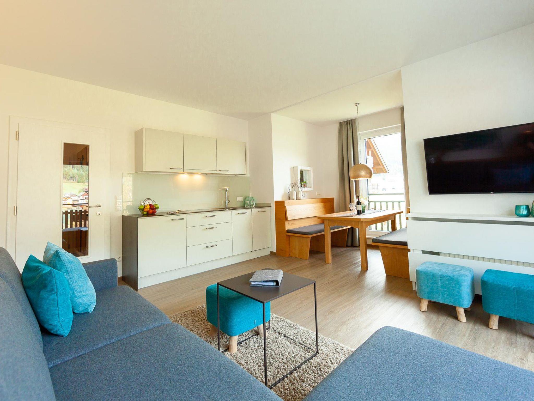 Im Schlafzimmer befindet sich neben dem Doppelbett noch zusätzlich ein bequemes Zustellbett, das einen weiteren Schlafplatz bietet. Der Wohnraum ist offen gestaltet und bietet neben der gut ausgestatteten Küche auch einen gemütlichen Essbereich. Eine große Couch mit Schlaffunktion sorgt für flexible Schlafmöglichkeiten und zusätzlichen Komfort.