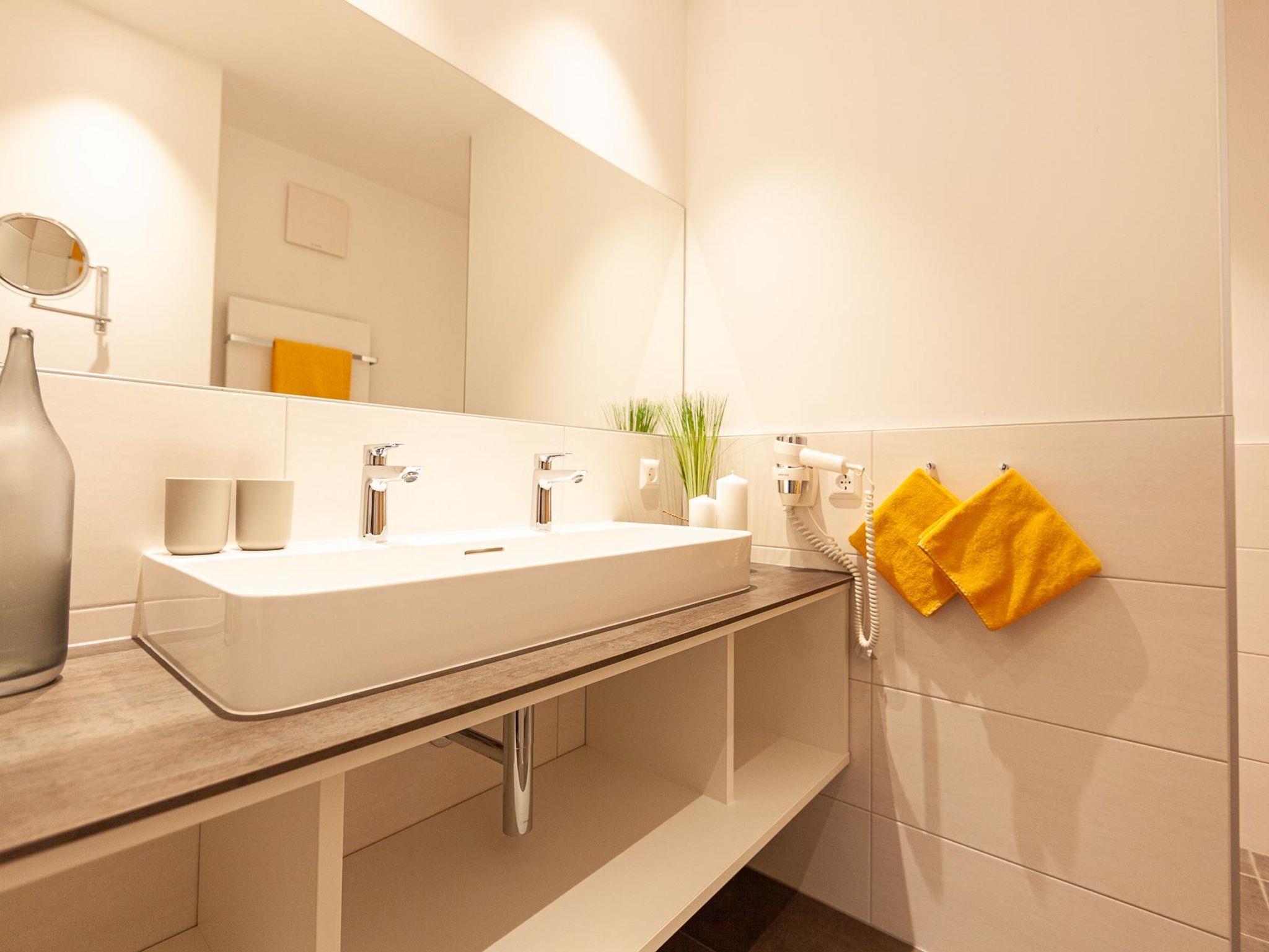 Bad und WC sind getrennt voneinander vom Vorraum aus begehbar.