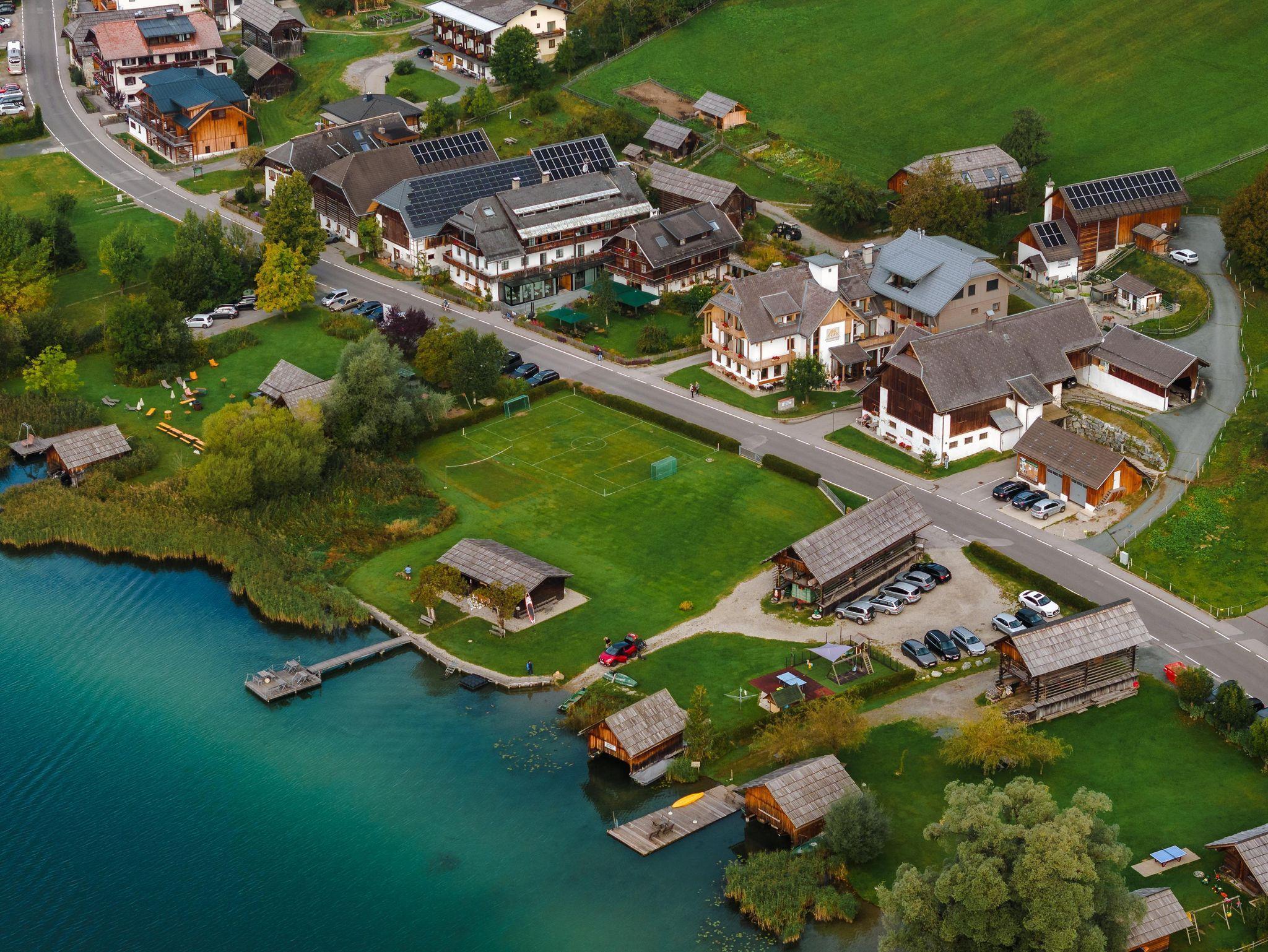 Erholen Sie sich am großen, privaten Badestrand mit Sonnenschirmen, Sonnenliegen, Ruderbooten, Kinderspielplatz, Beachvolleyball, Tischtennis und vielem mehr...