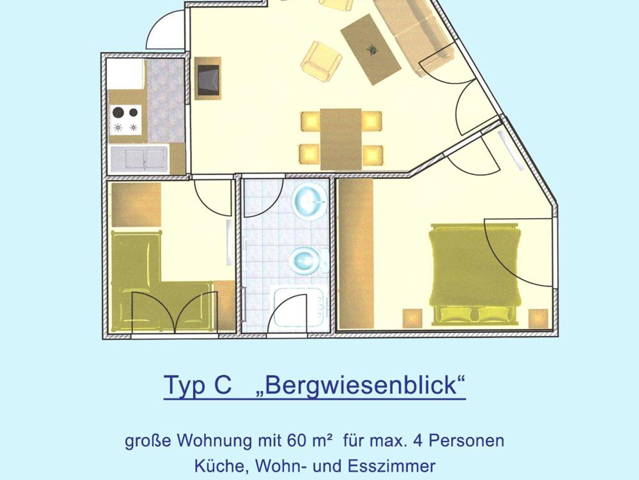Geräumige, helle Ferienwohnung (60 m²) ohne Balkon mit Wiesenblick