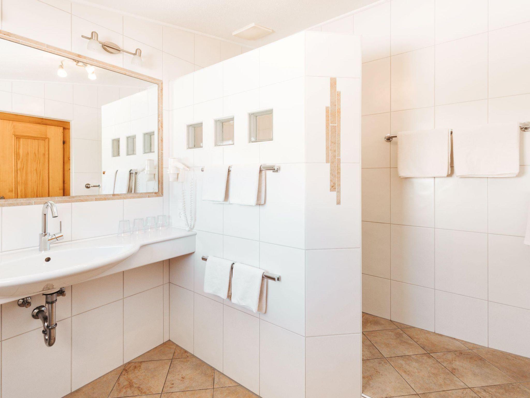 • Badezimmer mit großzügiger Dusche, separatem WC, Fön