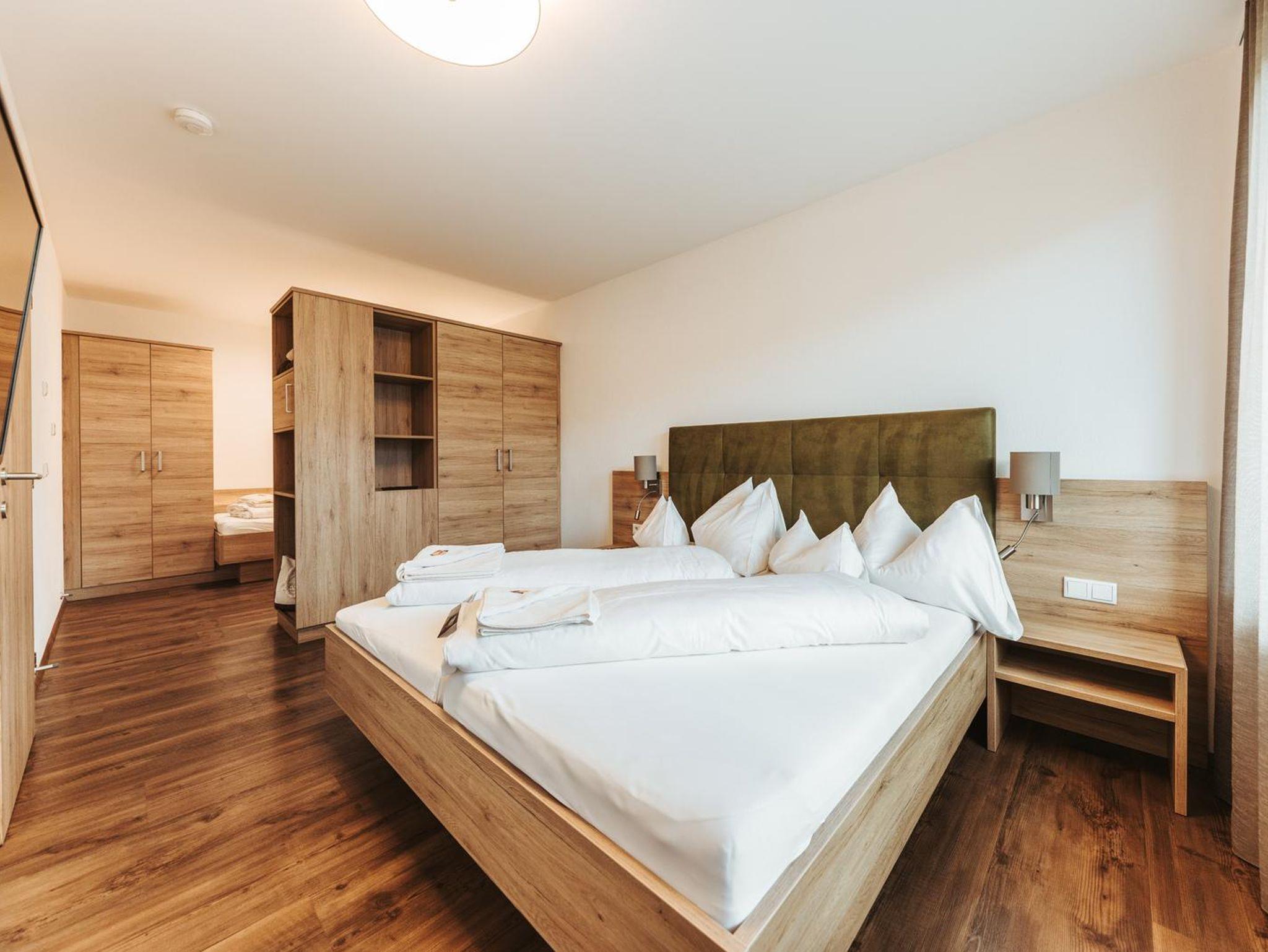 • 1 gemütliche Schlafzimmer mit Doppelbett und Einzelbett (optisch getrennt)