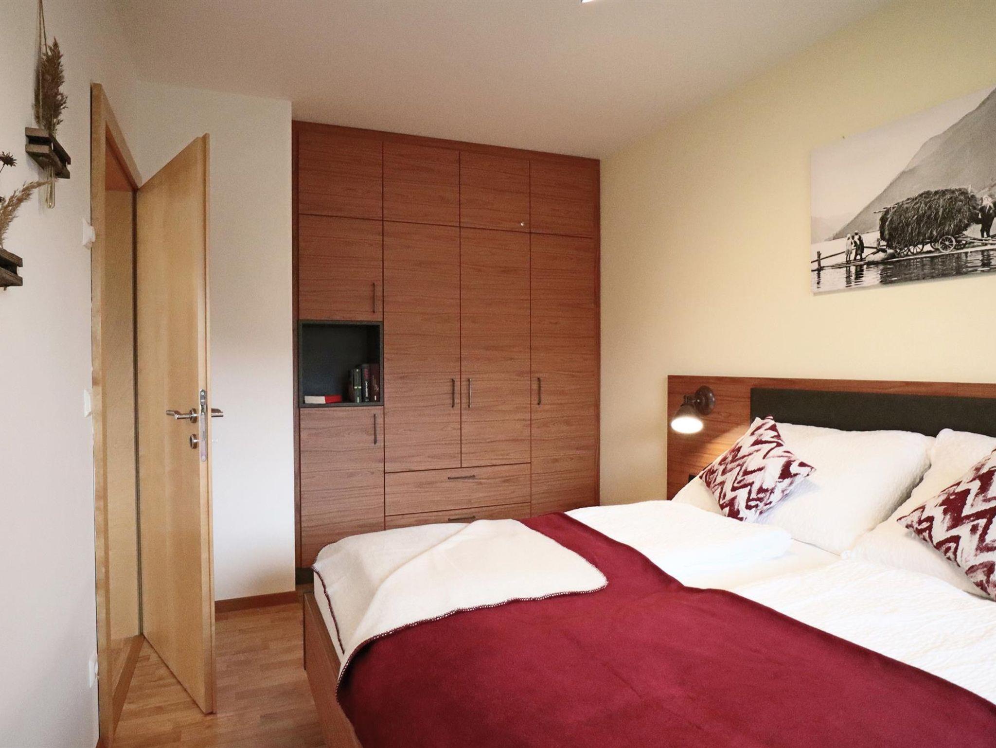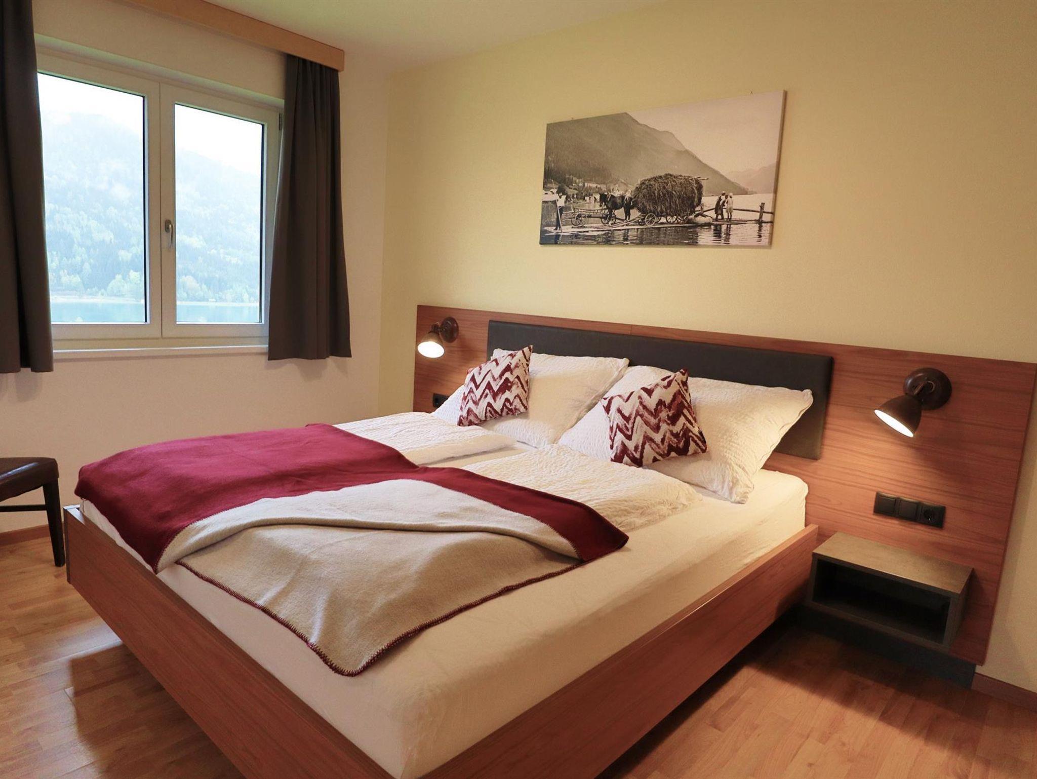 Die Ferienwohnung befindet sich im ersten Stock, ist aber vom Auto aus, barrierefrei zu erreichen. Der Balkon bietet einen herrlichen und ruhigen Blick über den See. Die Wohnung besteht aus 4 Räumen. Sie ist gemütlich und modern eingerichtet. Die Wohnung beinhaltet ein Wohnzimmer, ein Schlafzimmer, ein Vorzimmer, ein Bad mit integrierter Toilette und eine komplett eingerichtete Küche (mit Geschirrspüler, Kühlschrank, Mikrowelle, Kaffeemaschine, Elektroherd mit Backofen und Wasserkocher). Insgesamt misst die Wohnung ca. 41m².