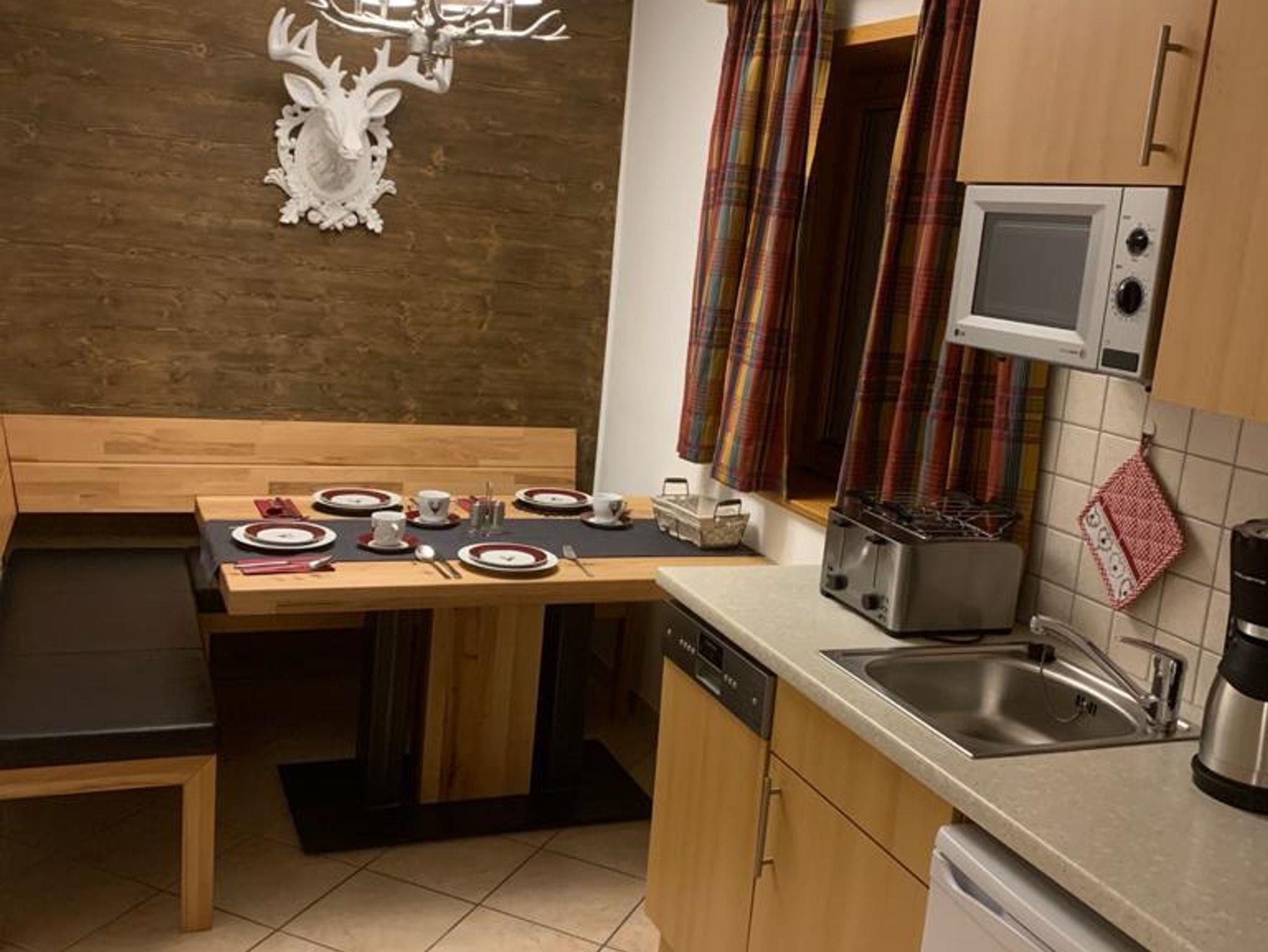 Das Appartement mit 55 qm ist eingerichtet mit 2 Schlafzimmer(Doppelbett), eine Küche, mit Essbereich, Kochherd, Kaffeemaschine, Spülmaschine, Mikrowelle, Kühlschrank,Dusche, Wachbecken, WC, Parkplätze mit Carport.