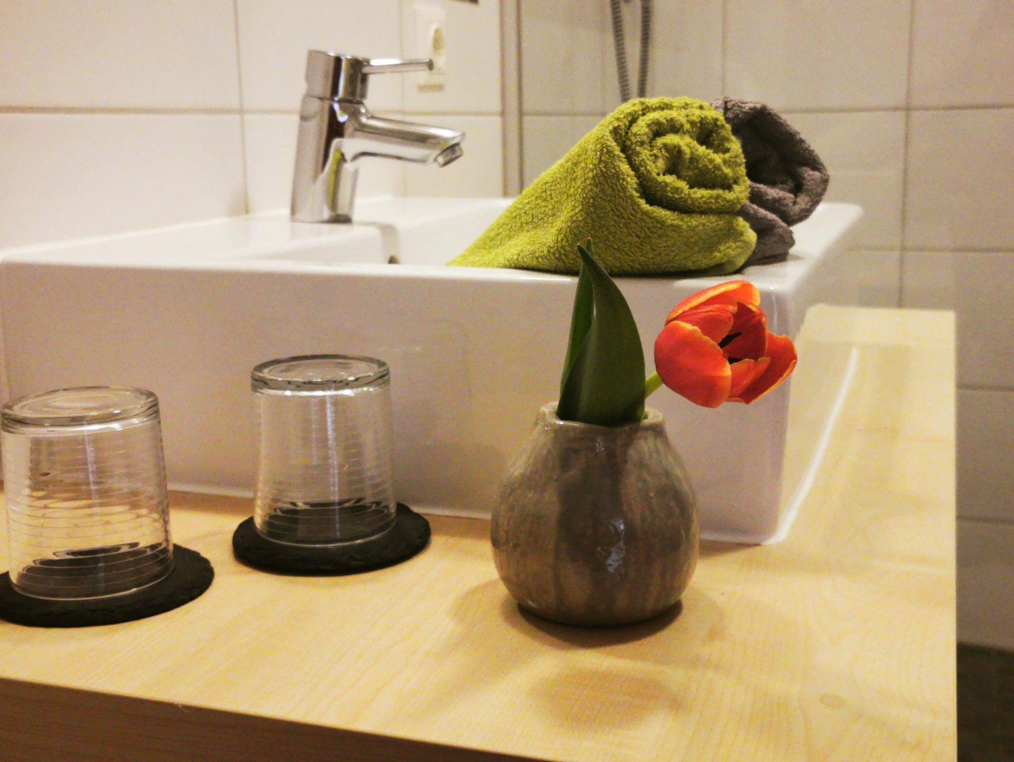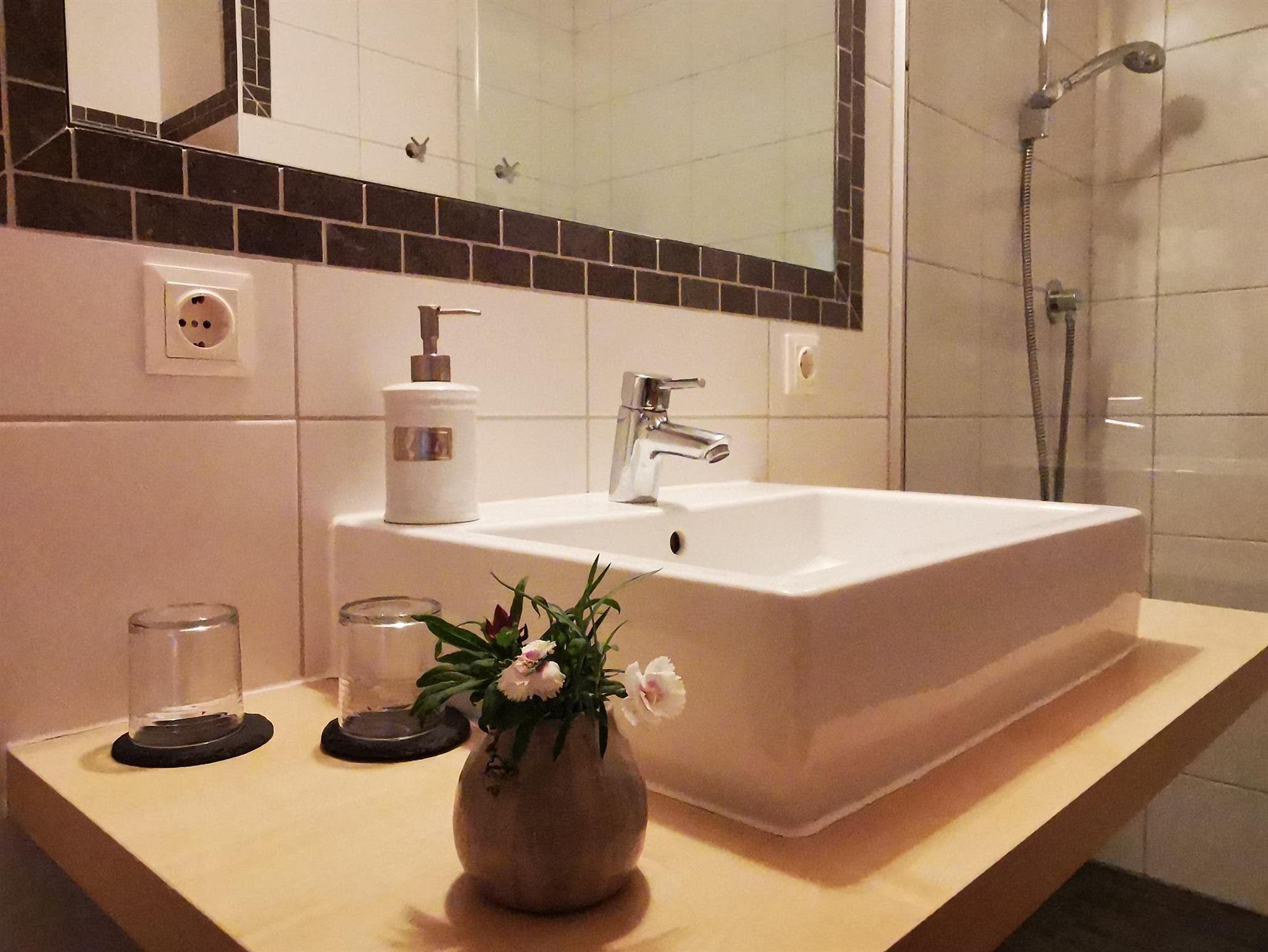 Das Bad ist neu renoviert in den Vierbettzimmern.