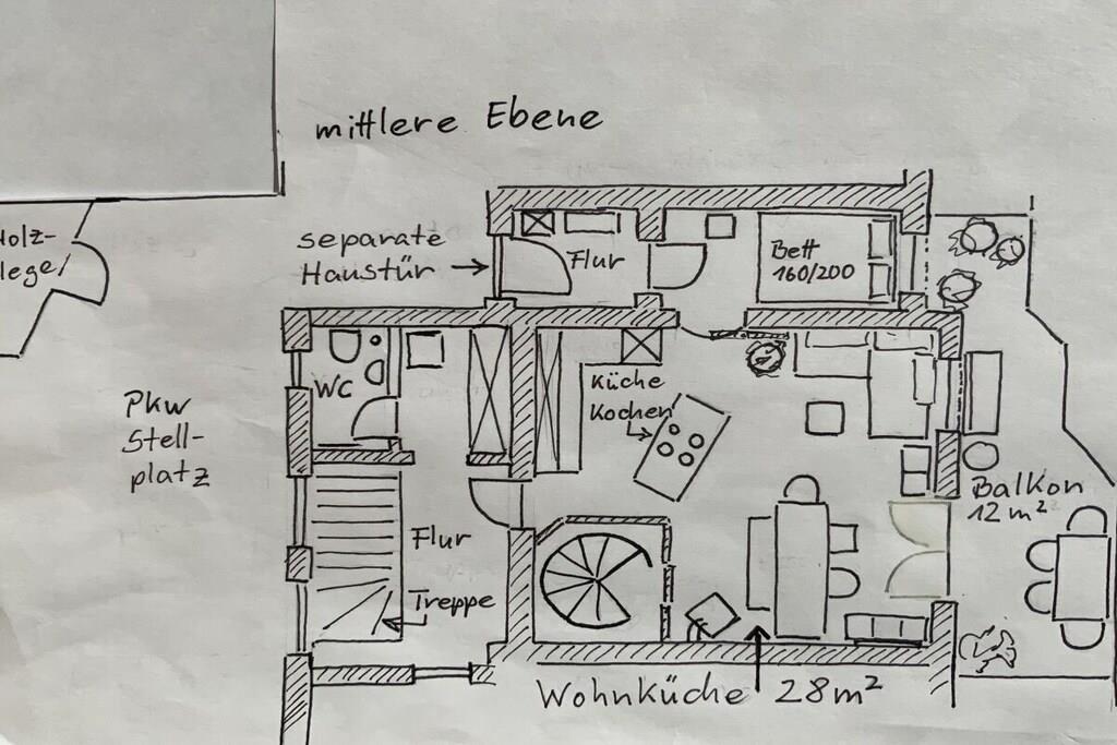 Für 2 bis 5 Personen ca 100 m² auf 2 Wohnebenen plus Südbalkon, überdachte Terrasse, großer Garten ( alleinige Nutzung) Saunahäuschen ( 2 Abende gratis ), zusätzlich wetterunabhängiger Outdoorschlafplatz sowie einige Fitnessgeräte unter den Arkaden, 2 überdachte Pkw-Stellplätze, Abstellraum / Skiraum mit Skischuhtrockner, Nutzung von 2 Schlitten, Auf Wunsch kann ein Babybett mit in das große Schlafzimmer gestellt werden. IHR schlaft auf hochwertigen Naturlatexzonenmatratzen in Naturbettwaren mit Biobettwäsche. Die gut ausgestattete Wohnküche mit Kochinsel lädt zum gemeinsamen Kochen ein.