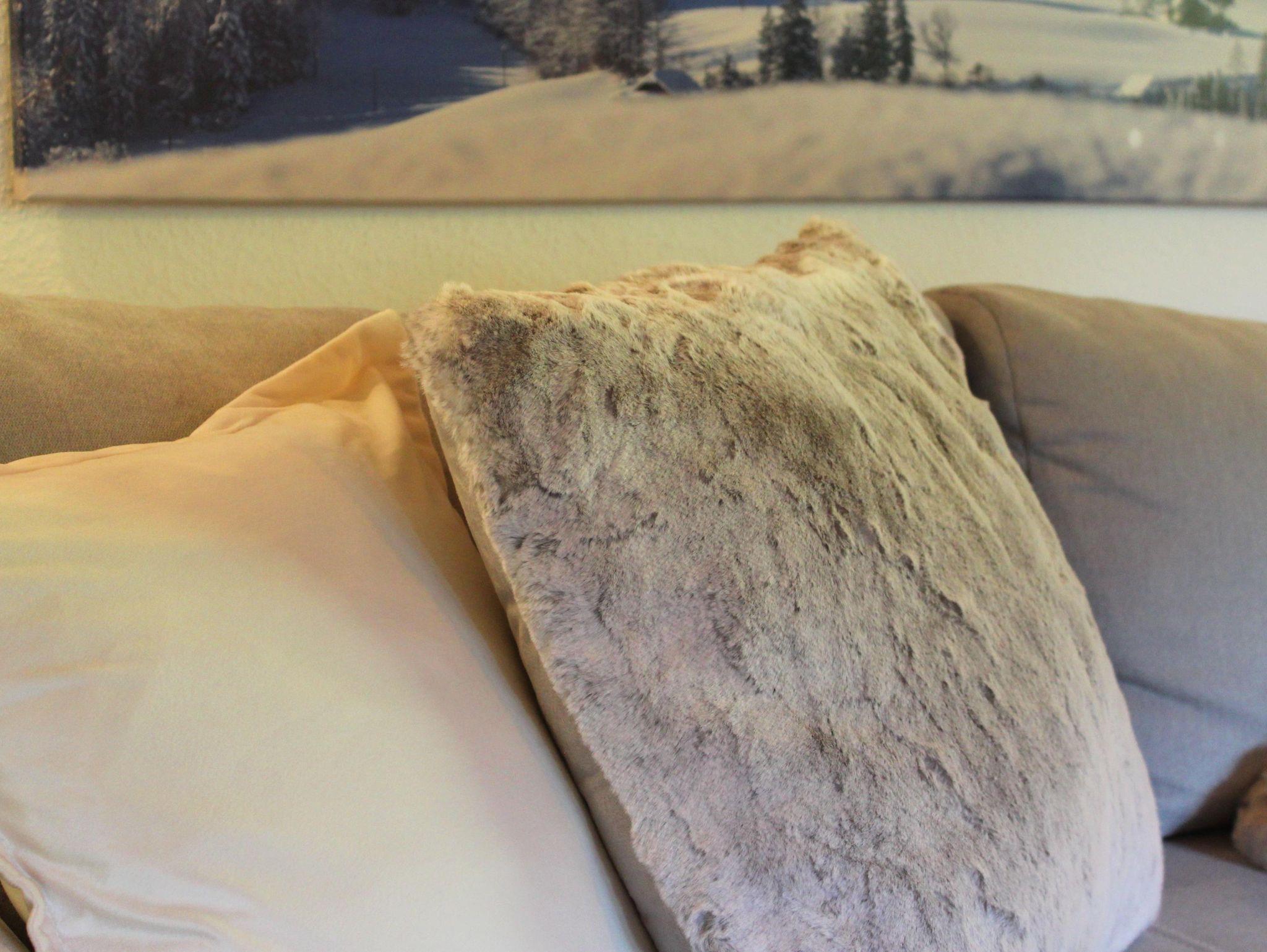• Gemütliche Wohnecke mit Kuscheldecke und Flachbildfernseher