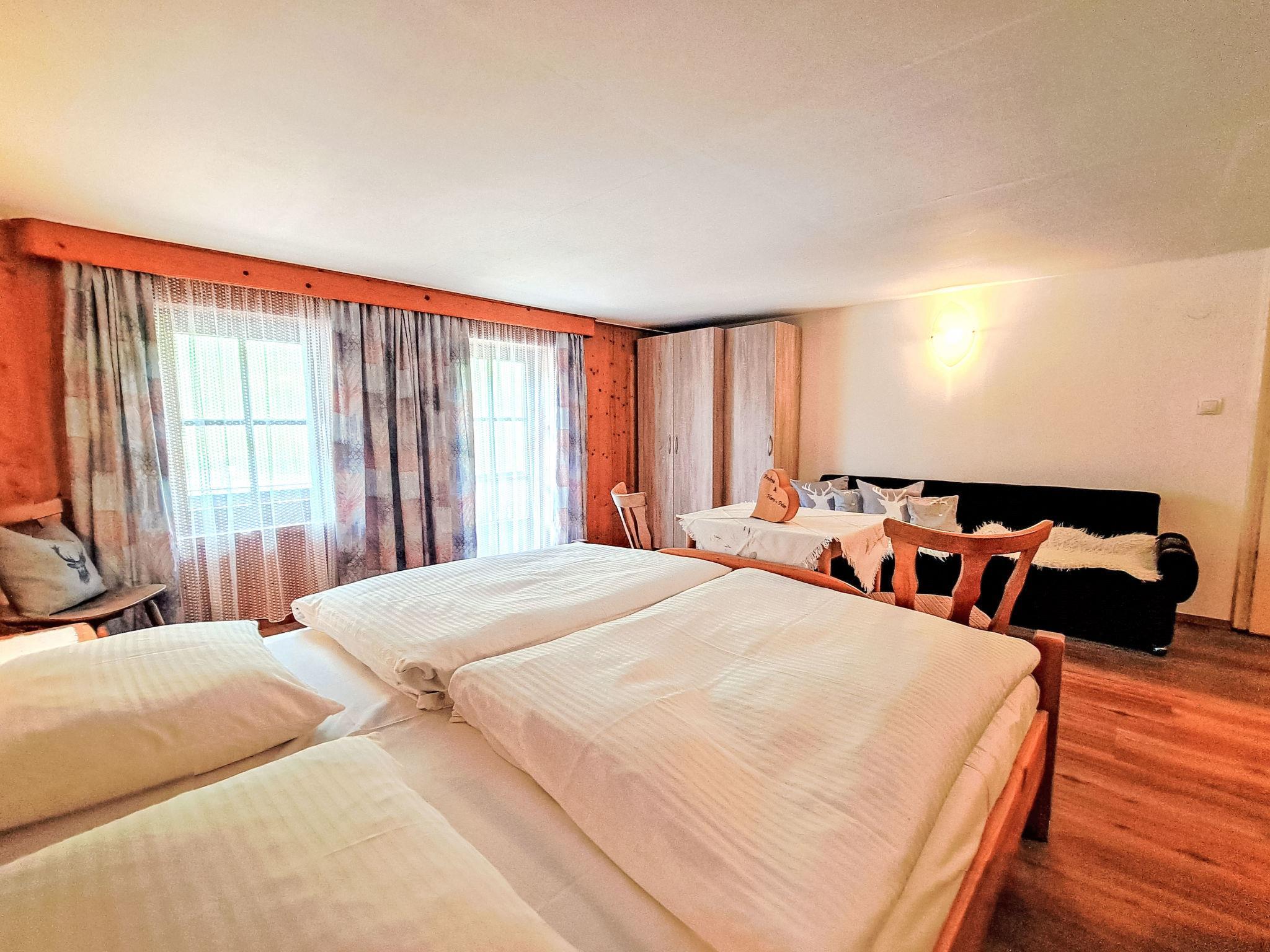 "Kirmerhof", 6-room apartment 120 m2 on 2 levels. Partly renovated in 2021, beautiful and cosy furnishings: upper floor: 1 room with 1 bed, 1 double bed and hand-basin. Kitchen-/living room (oven, dishwasher, 4 ceramic glass hob hotplates, toaster, kettle, microwave, freezer, electric coffee machine) with dining table, satellite TV, CD-player and DVD. 2nd upper floor: 2 rooms, each room with 1 bed, 1 double bed and hand-basin. Exit to the balcony. 1 double bedroom with 1 double bed and hand-basin. 1 room with 1 bed and hand-basin. 2 showers, 2 sep. WC's. Heating. Wooden floors, carpet. Balcony, patio, lawn 100 m2. Balcony furniture, barbecue, deck chairs (6). Panoramic view of the countryside. Facilities: children's high chair, baby cot. Internet (WiFi, free). Please note: non-smokers only. Smoke alarm, fire extinguisher. The apartment can be booked in winter under AT6280.608.1 (ZAZ315) for up to 14 people. When there are less than the maximum number of guests staying at the property, not all of the bedrooms will be available for use.