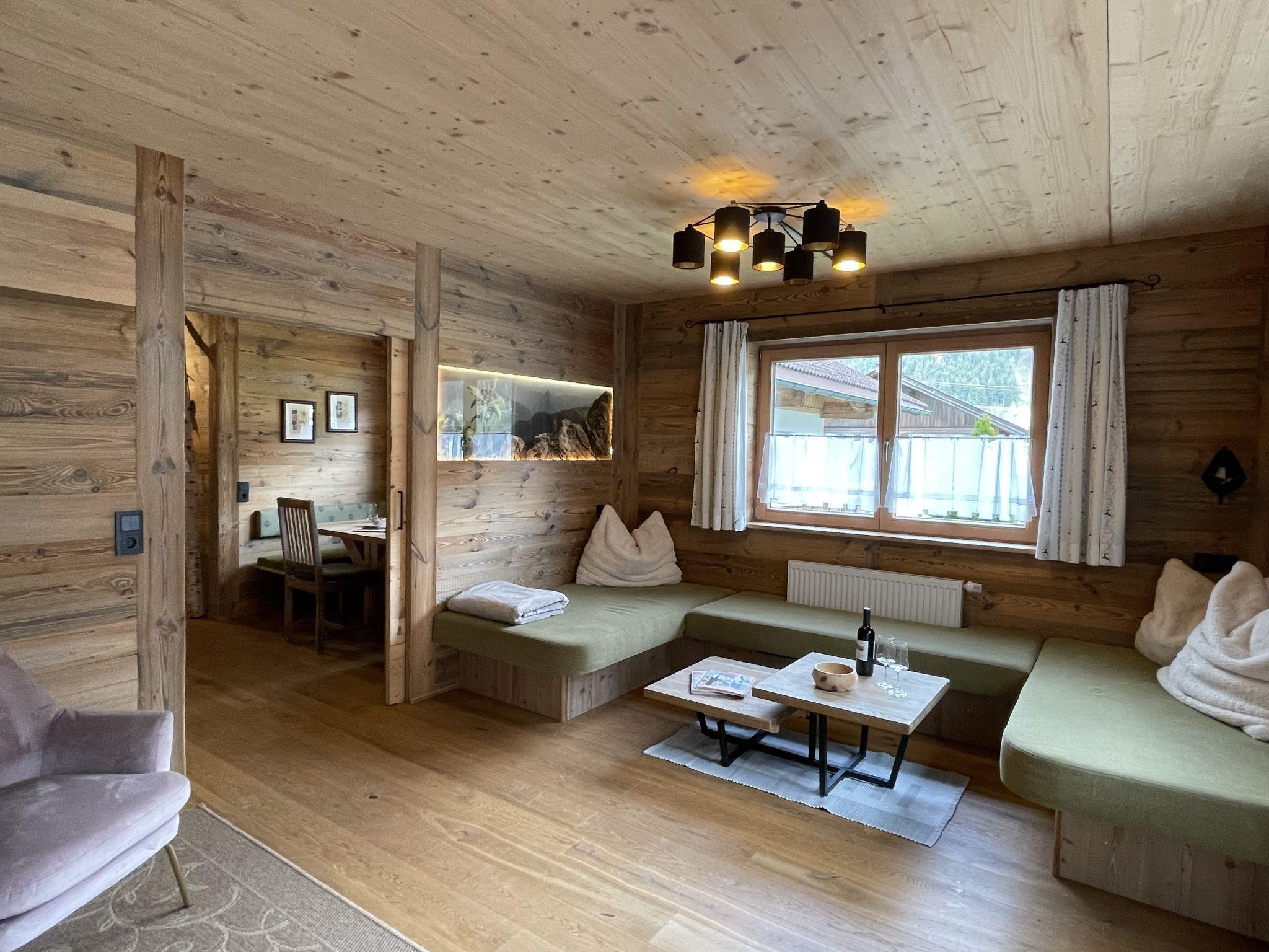 "Eberharter", 4-room apartment 90 m2 on 1st floor. Fully renovated in 2019, cosy and wooden furniture furnishings: living room with satellite TV. Exit to the terrace. 2 double bedrooms. 1 room with 1 bed. Kitchen (oven, dishwasher, 4 ceramic glass hob hotplates, toaster, kettle, freezer, electric coffee machine) with dining nook. Shower, sep. WC, double hand-basin. Wooden floors. Terrace 20 m2. Terrace furniture, barbecue (portable). Facilities: Internet (WiFi, free). Please note: non-smokers only. Private entrance, fire extinguisher.