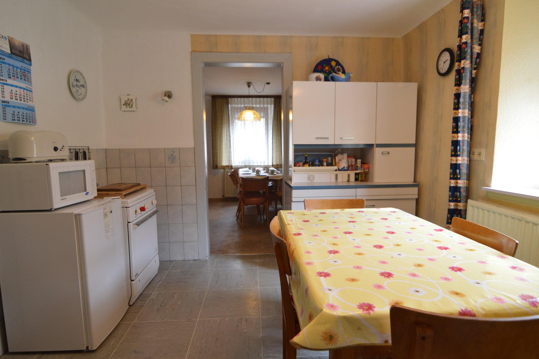 Dit huis ligt in een prachtige omgeving, vanwaaruit je alle kanten opkunt (de Ardennen, de Eiffel, de Hoge Venen)Het huis zelf is oud. De bovenverdieping is voor een groot deel gerenoveerd en erg netjes (doucheruimte en 3 slaapkamers) De badkamer en 2 slaapkamers zijn nog in jaren 70 stijl en aan renovatie toe. De benedenverdieping is oud, maar wel gezellig. De inrichting is wel aan vernieuwing toe! De keuken is onhandig: een piepklein aanrechtje, wat erg lastig is als je voor een groot gezelschap (wij waren met 9 man) moet afwassen. De inrichting van de keuken voldeed niet helemaal voor een groot gezelschap: geen grote pannen, waardoor het koken lastig werd. (er waren overigens wel veel kleinere pannen)Wel handig was dat er een keramische kookplaat en een gasformuis stond, waardoor er op twee plekken tegelijk gekookt kon worden. Daardoor lukte het toch om voor een groot gezelschap te koken. Om het huis zit een grote tuin, waarin je heerlijk in de zon kunt zitten (er is ook genoeg tuinmeubilair)Het sleuteladres zit op 17 km. van het huis, de eiegenaar was erg vriendelijk en hulpvaardig.
