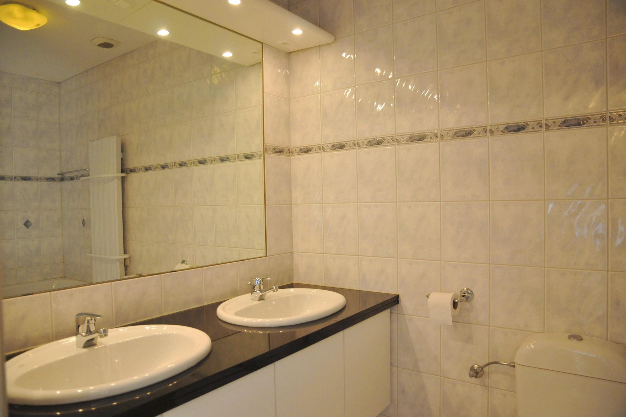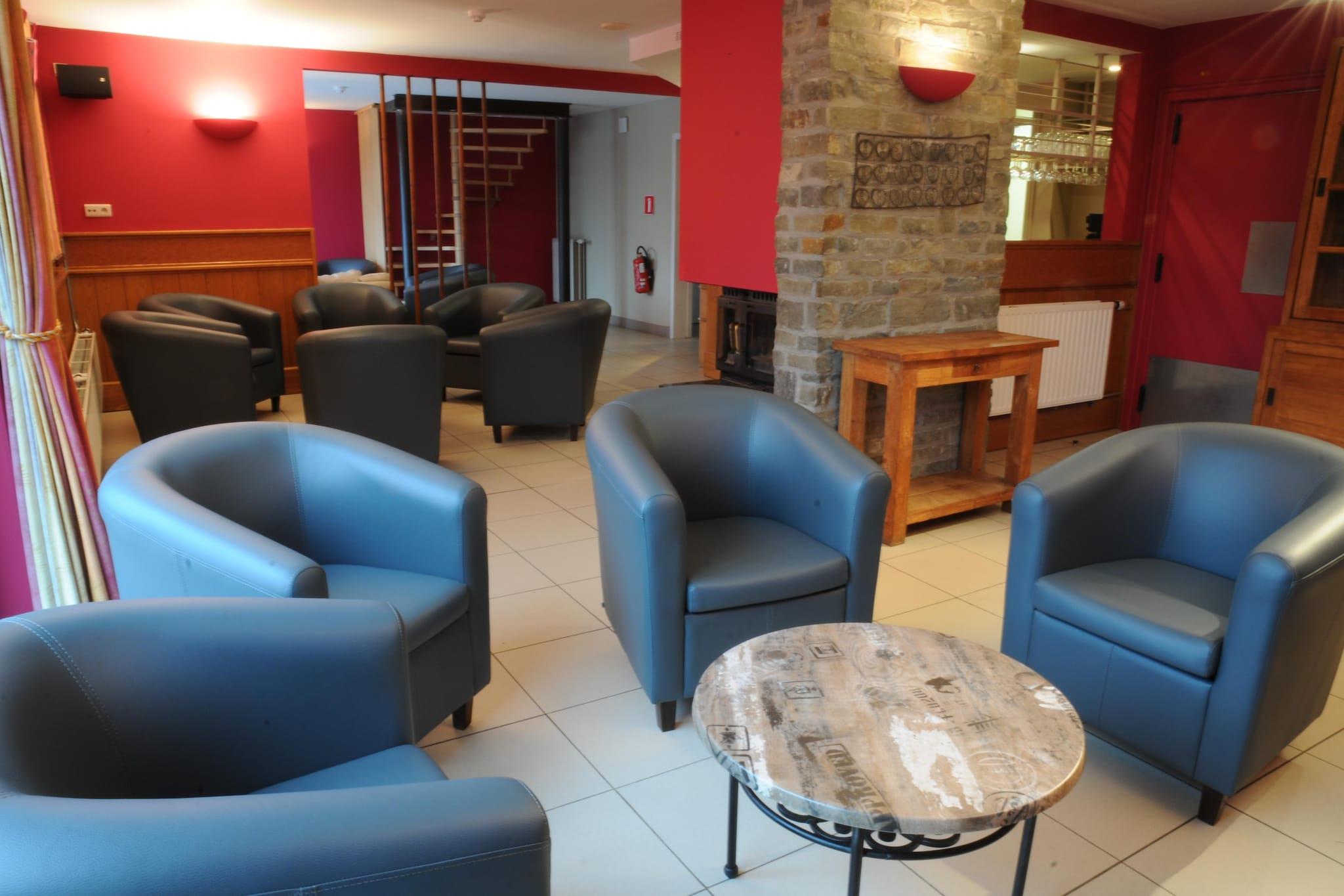 Gruppeindkvartering til 20 personer beliggende i ferieparken "Résidence Durbuy" midt i naturen og alligevel kun 3 km fra Durbuy. I stueetagen: professionelt udstyret køkken (ovn, opvaskemaskine, køleskab, bordplade, kogeplader, mikrobølgeovn), stue (TV, DVD, CD, brændeovn), veranda med spisestue og afslapningsområde (billard, kicker) 2 toiletter. 1. sal: 5 soveværelser (2 soveværelser med 1 x køjeseng, 3 soveværelser med 2 x 1 pers.) + 1 sovesal (2 x køjesenge + 2 x køjesenge i 3 niveauer) Privat sauna, 2 badeværelser hver med badekar/bruser og toilet, 3 separate brusere med håndvask og 1 toilet. Ølhanen er dekorativ (virker ikke). Spisestuen har plads til op til 40 personer. Gratis Wi-Fi og kæledyr tilladt. Stor terrasse med havemøbler og bordtennis. Centralvarme.