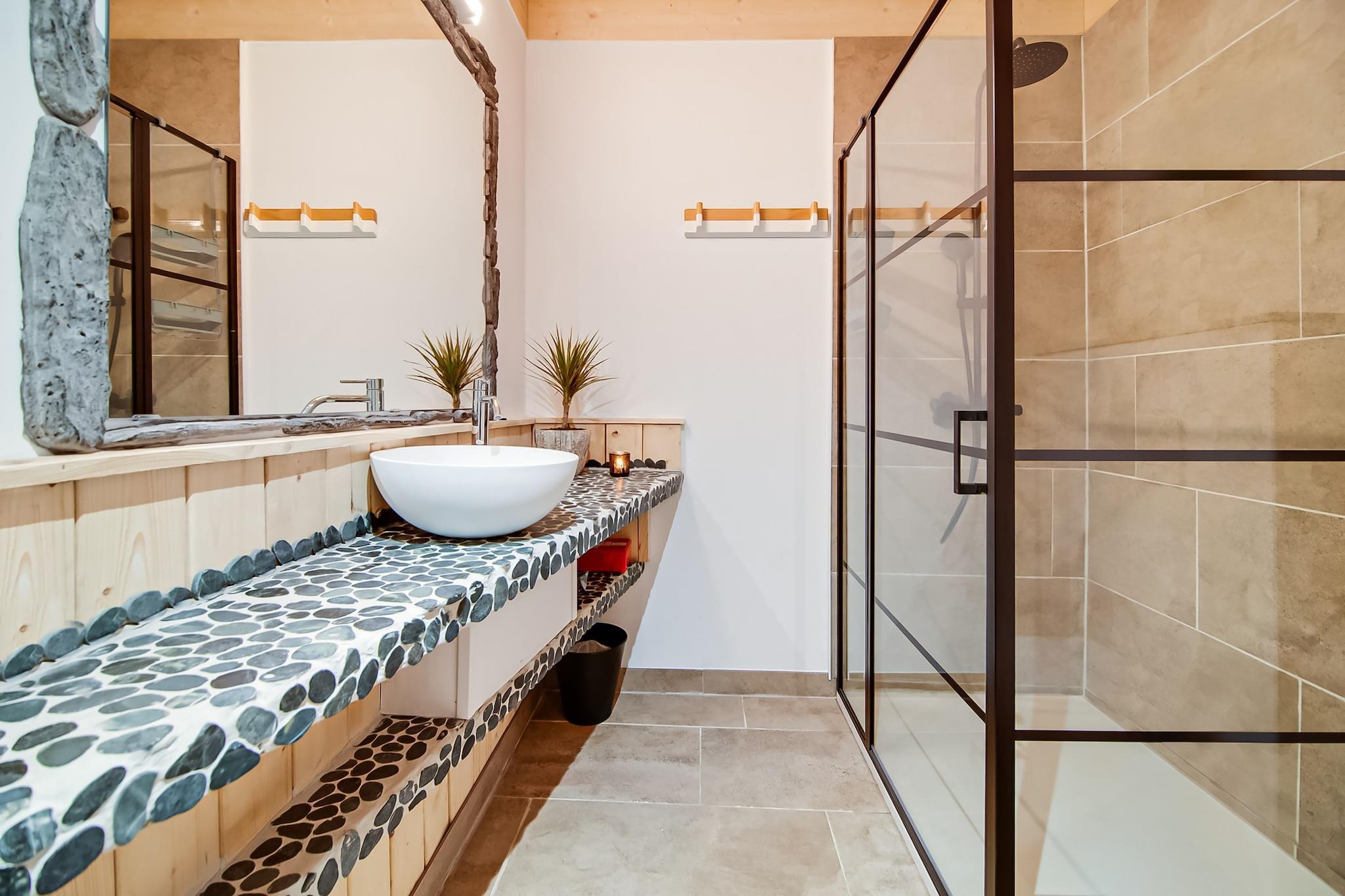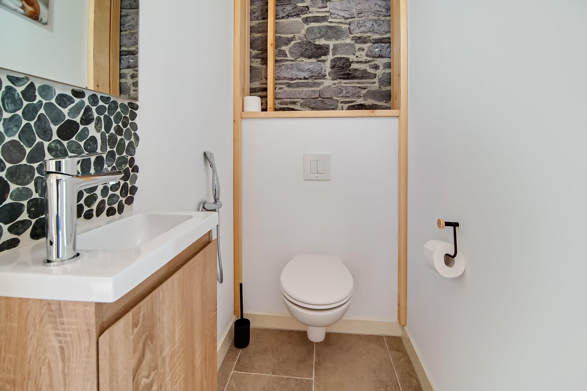 Dette stilfulde, kæledyrsvenlige sommerhus i Érezée tilbyder en rolig oase for par eller små familier. Kun 20 meter fra skoven og 3 km fra Ourthe-floden er det perfekt for naturelskere og friluftsentusiaster. Gæsterne kan udforske den middelalderlige charme i Durbuy, verdens mindste by, eller besøge Hottons berømte huler og det interaktive Rivéo Akvarium. For vandreture og panoramaudsigt er den keltiske rute i Berismenil et must-see. Ejendommen har to soveværelser med eget badeværelse, en hyggelig stue med varmepumpe og digital-tv samt et fuldt udstyret åbent køkken med keramisk kogeplade, grill-ovn og opvaskemaskine. Gulvvarme sikrer komfort året rundt, mens den private sauna og spabad tilbyder afslapning efter en dag med eventyr. Udendørs kan du nyde en indhegnet have med terrasse, grill, liggestole, trampolin og legeredskaber. En vaskemaskine, ladestander til elbiler og overvågningskamera giver ekstra komfort og sikkerhed. Nærliggende spisemuligheder inkluderer La Brasserie du Ravel med belgisk-fransk køkken, La Carretta med italienske favoritter og L'Affenage, kendt for sine raffinerede regionale retter.