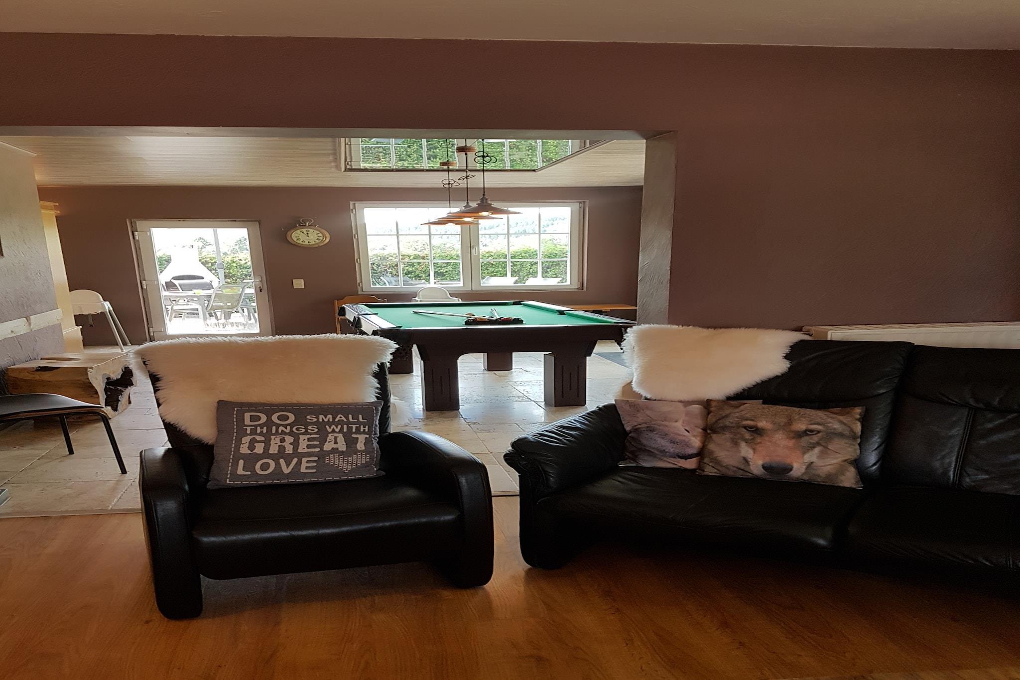 Dette rummelige feriehus med 7 soveværelser i Francorchamps er perfekt til familiesammenkomster eller gruppeferier med op til 18 gæster. Efter en dag med udforskning kan I slappe af i den private sauna eller spille billard eller bordfodbold. Huset har centralvarme, en indhegnet have og to griller til lange, afslappede aftener på terrassen. Beliggende kun 1 km fra byens centrum finder I butikker, restauranter og en sø i nærheden, ideel til picnics og solnedgangsudsigt. Spa-Francorchamps-banen, Stavelot Abbey og de termiske bade i Spa er alle inden for rækkevidde. For et skifte af landskab er kystlinjen kun 30 km væk. Hjemmet er børnevenligt og tilbyder en børneseng, høj stol og rigelig plads til at lege. Uanset om I nyder et solidt måltid udendørs eller slapper af i saunaen, tilbyder denne villa en luksuriøs og indbydende base i de belgiske Ardenner. Gratis parkering til rådighed. Gyngen er ikke tilgængelig i den kolde årstid. Der opkræves et gebyr for forsyninger og service på EUR 225,00 tættere på din ankomstdato. Du modtager en separat meddelelse med betalingslinket. Gebyret for forsyninger og service sikrer et problemfrit ophold og dækker eventuelle ekstra tjenester såsom rengøring, servicegebyrer, forbrug, skader eller eventuelle ekstraudgifter, der opstår under opholdet.
