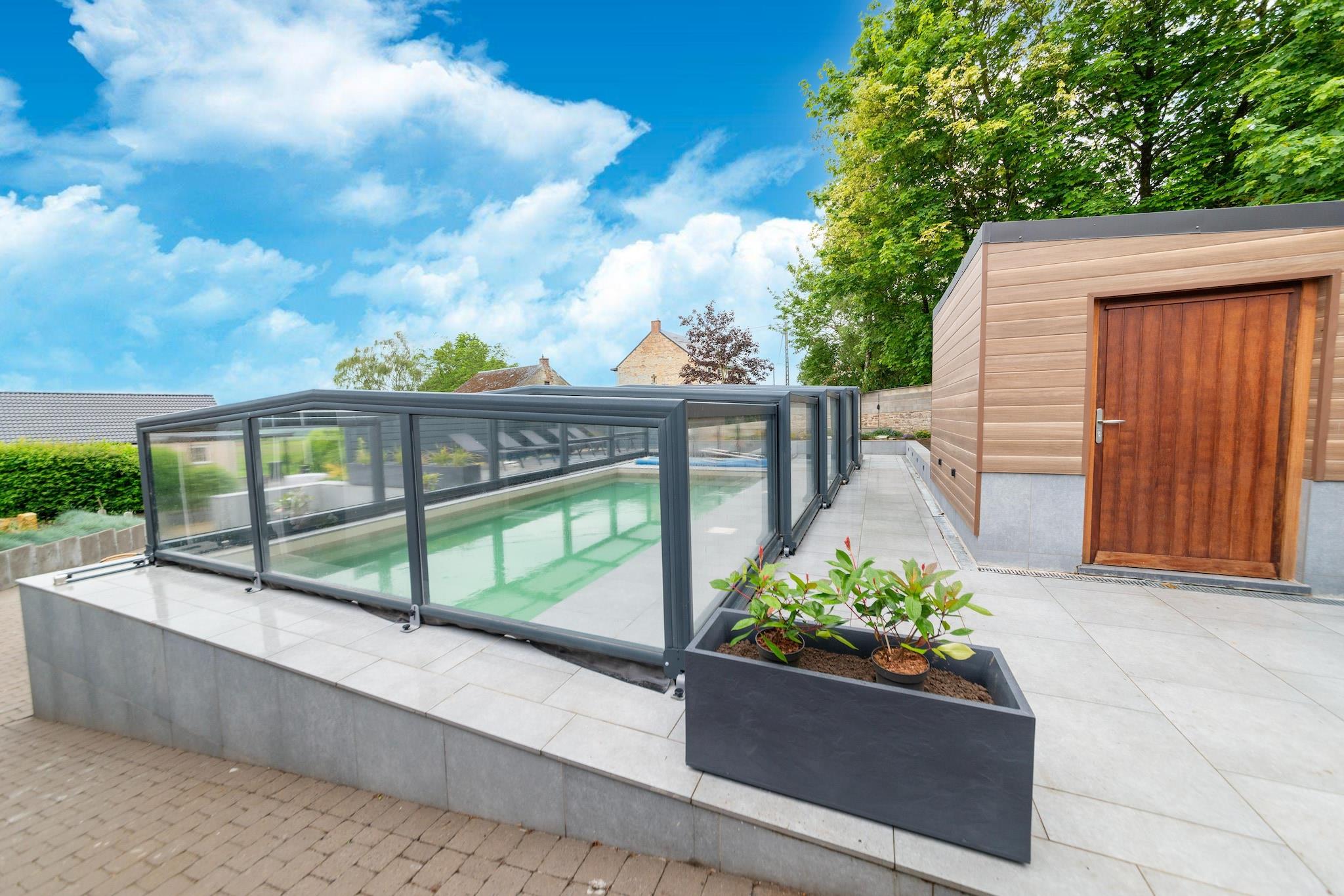 Velkommen til dit luksuriøse landlige tilflugtssted i Goesnes, hvor komfort og afslapning venter. Dette feriehus med 4 soveværelser er ideelt til familier på op til 8 gæster og har en privat indendørs swimmingpool, en beroligende sauna og et boblende spabad, perfekt til afslapning efter en dag med udforskning. Huset ligger i hjertet af Namur-provinsen og er omgivet af bølgende marker, skove og maleriske landsbyer, der tilbyder uendelige muligheder for vandreture og gåture i naturen. Det rummelige interiør inkluderer en stilfuld stue, et fuldt udstyret køkken med moderne apparater og en spiseplads, der er perfekt til fælles måltider. Der er også en vaskemaskine til rådighed for ekstra bekvemmelighed. Udendørs kan du nyde den smukke terrasse med panoramaudsigt, dejlige damme og en grillplads. Børnene vil elske bordtennisanlægget, og der er en børneseng og højstol til rådighed. Alle senge er redt ved ankomst, så du kan begynde at slappe af i det øjeblik, du ankommer. En rolig og stilfuld flugt i de belgiske Ardenner. Huset er let tilgængeligt og velegnet til ældre gæster.