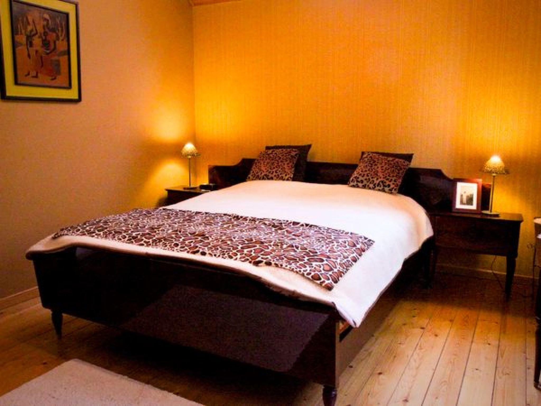 There are 3 bedrooms. The beautiful Congo room (room 1) is located on the ground floor with a view of the garden with the hundred-year-old red and green beech trees. The room contains a double bed. The room has a private bathroom with sink, bath and toilet.
