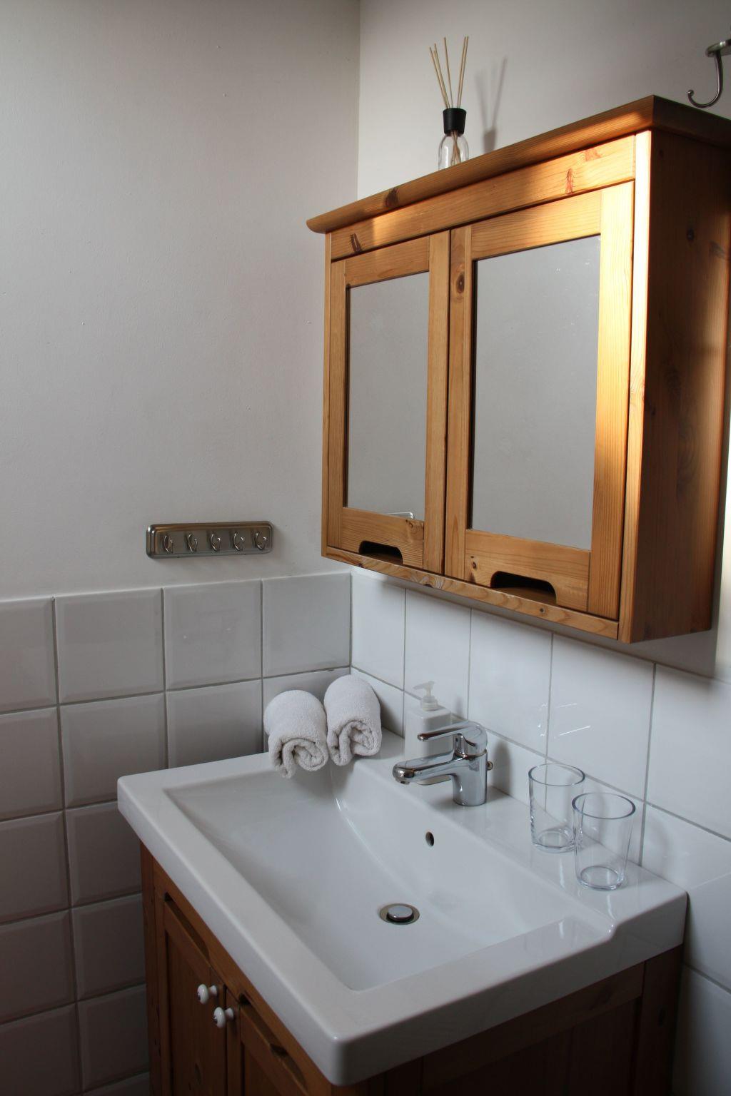 The lovingly furnished holiday flat (42m2) is located on the 1st floor with a separate entrance via an external spiral staircase. It consists of a living/bedroom with high-quality box-spring double bed (2x 90x2.00m), sitting area, TV and DVD player, antique chest of drawers and mirror. The kitchen is equipped with a kitchenette, a dining area and a reading corner with a cosy armchair. Kitchen: fridge, oven, 4 ring hob, sink, cupboards with crockery, cutlery, kettle and pans, glasses, Nesspresso, Senseo, etc. The satellite TV offers mainly German-speaking channels such as ARD, ZDF, WDR, etc. and of course international channels such as CNN etc. (satellite Astra). (Satelit Astra)