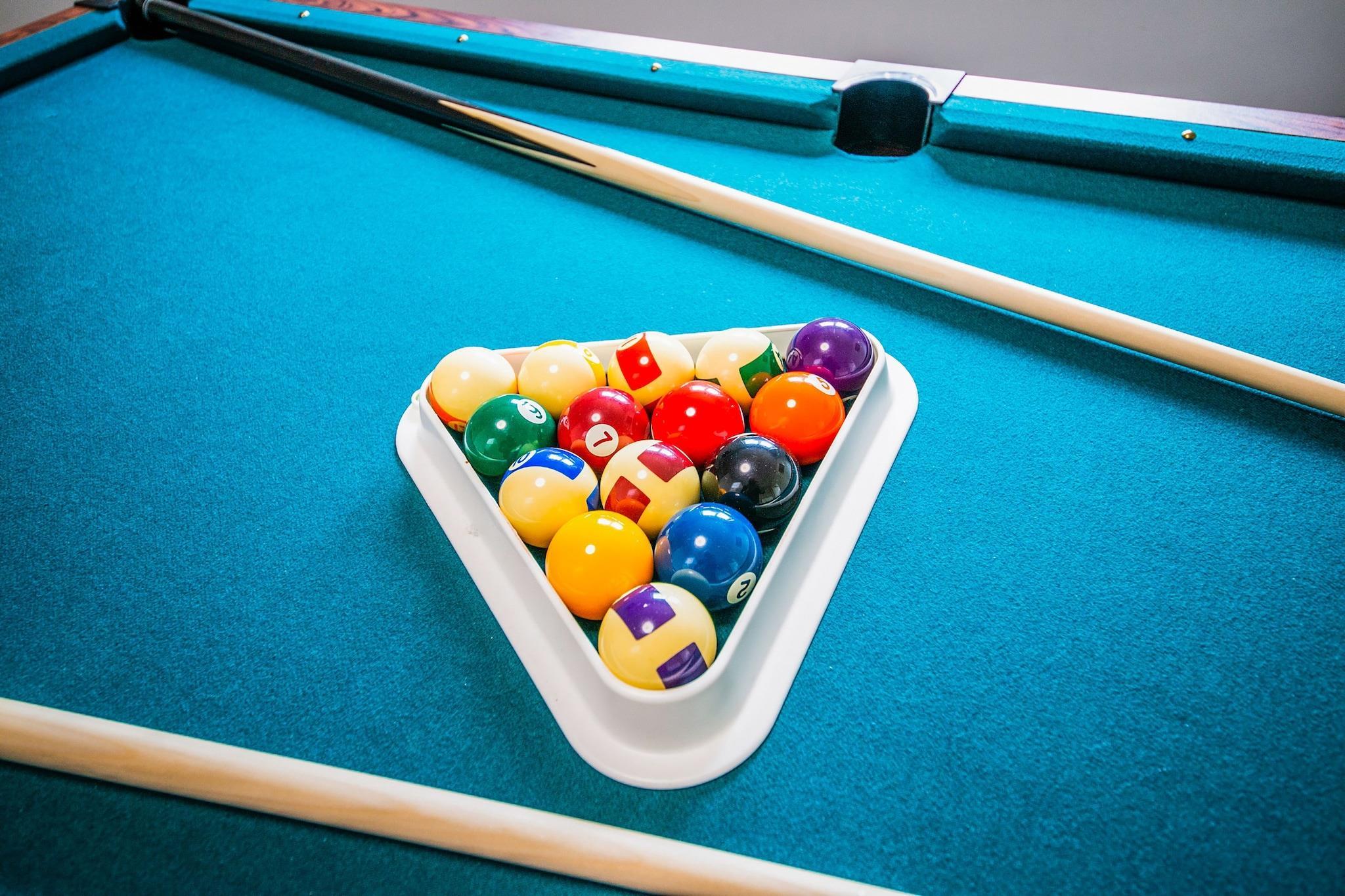 Stueetage: (Stue(dobbeltsovesofa), spisestue(spisebord), Køkken(komfur, kaffemaskine, combi-mikroovn, køle-fryseskab)) Kælderetage: (soveværelse(dobbeltseng), soveværelse(enkeltseng, enkeltseng), badeværelse(bruser, håndvask), badeværelse(bruser, håndvask), opholdsrum(biljard)) terrasse, have, parkering, swimmingpool(deles med ejer)