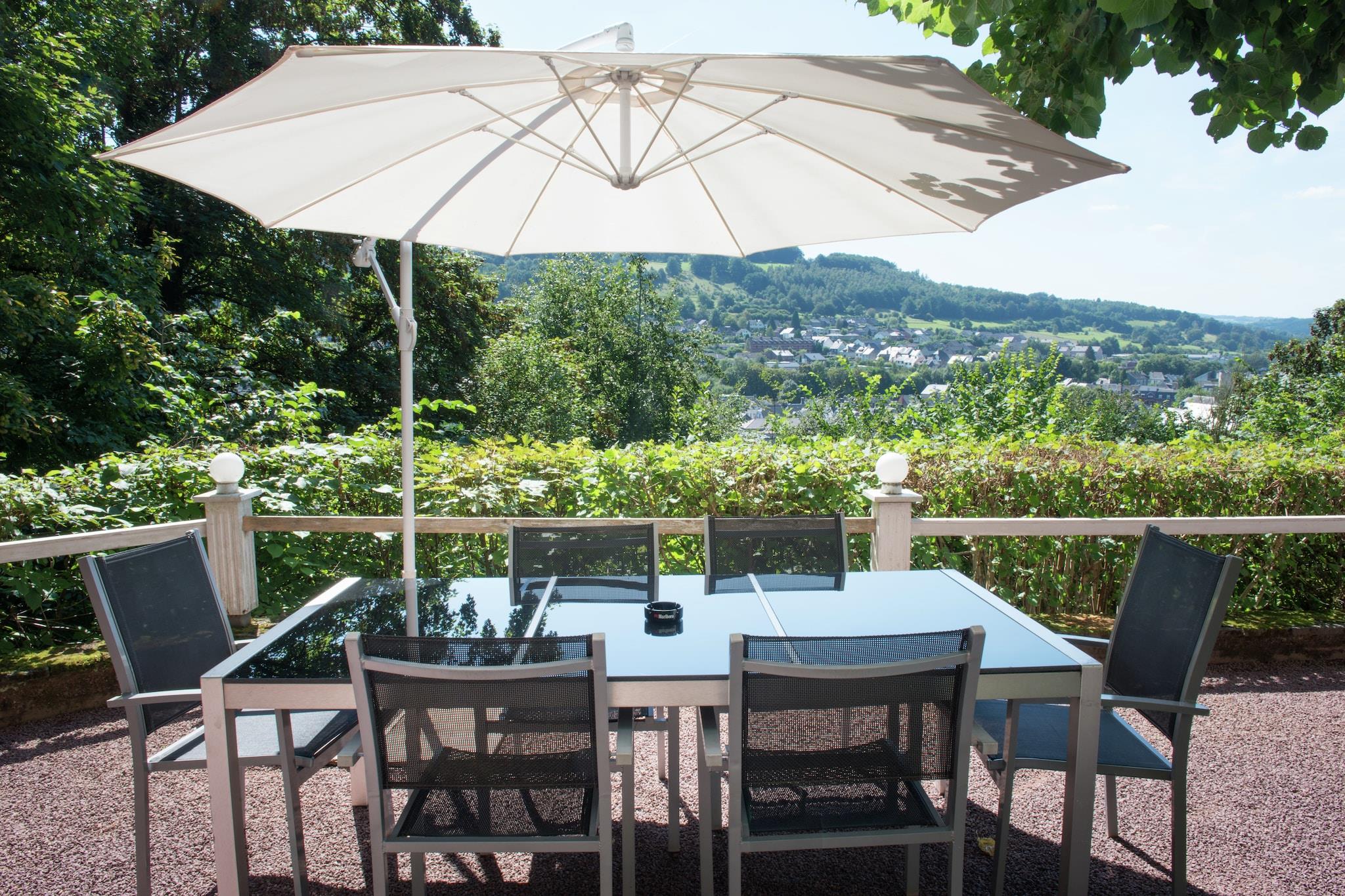 Mooi ligging van de villa. Je kijkt over Malmedy en Malmedy is te voet ook goed te bereiken. Het huis geeft iets koninklijks door het grote balkon en de veranda. Het terras heeft een mooie ligging en uitzicht. Je zit er vrij en toch op loopafstand van winkels. Het enige wat tegenvalt zijn de extra kosten. Totaal 200 euro voor hond, haardhout, schoonmaak, toeristen belasting en elekticiteit. een tegenvaller.Jammer genoeg wordt het huis ook door rokers gebruikt.