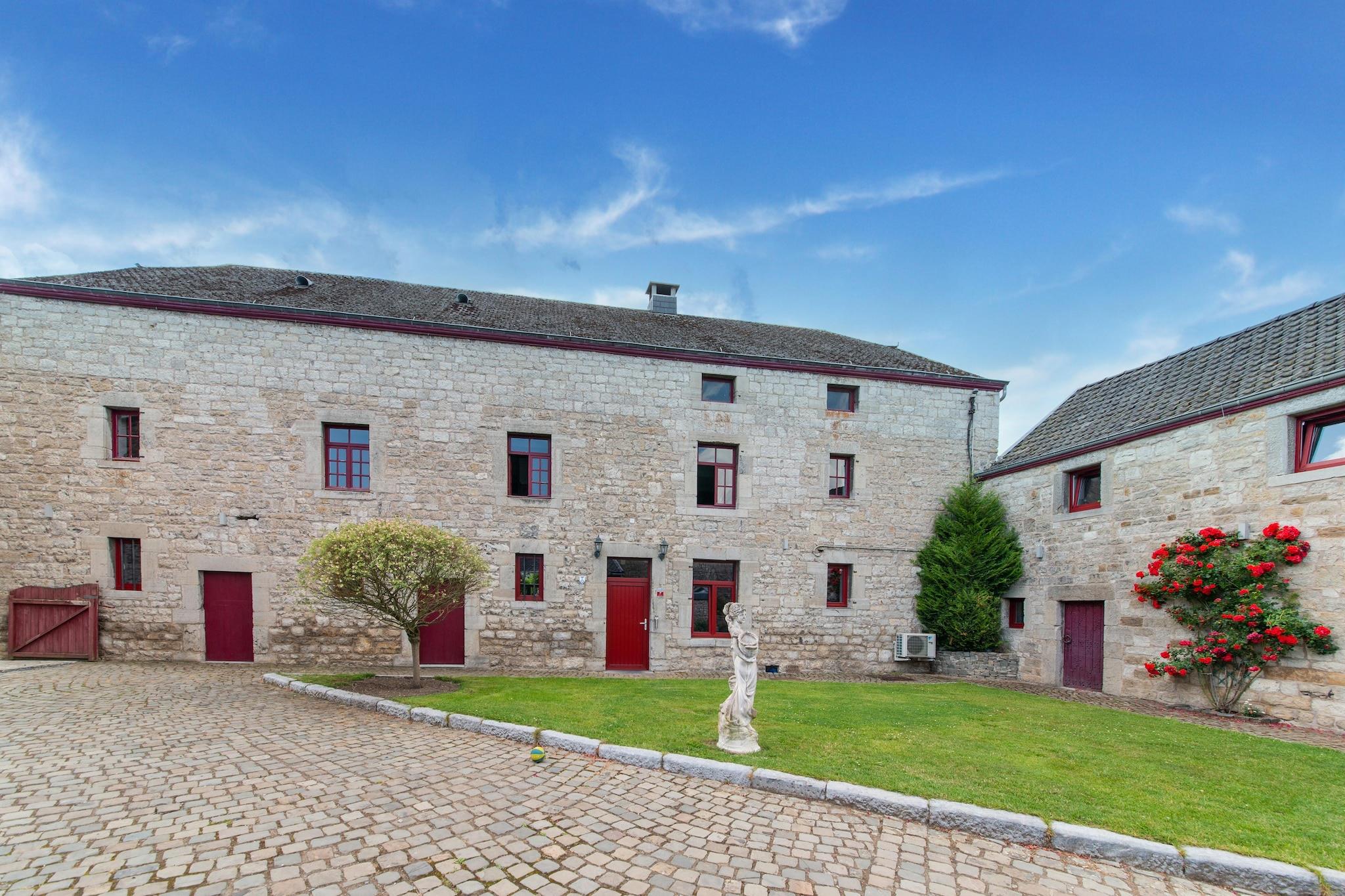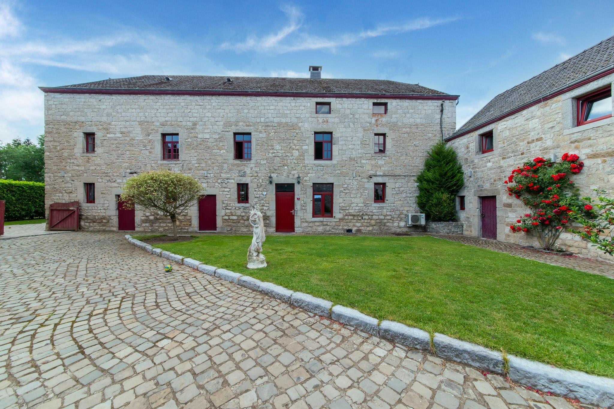 Beliggende i Melreux-Hotton er La Ferme du Noyer et rummeligt fritliggende feriehus ideelt til store familier eller grupper på op til 27 gæster. Kun 1 km fra byens centrum og omgivet af skov, tilbyder det nem adgang til naturen og lokale attraktioner. Gæster kan udforske de fantastiske Grottes de Hotton, nyde interaktive udstillinger på Rivéo Aquarium eller slentre gennem de charmerende gader i Durbuy, kendt som den mindste by i verden2. Villaen har 11 soveværelser, mange med en-suite badeværelser, herunder værelser med køjesenge til børn. Det åbne køkken er udstyret med to ovne, to opvaskemaskiner og et 8-ringet keramisk komfur - perfekt til gruppemåltider. To stuer, en med pejs og en anden med billard, byder på hyggelige samlingsrum. Gæsterne kan slappe af i saunaen, nyde udendørs brusere og slappe af i den indhegnede have med grill, legeredskaber og havemøbler. Nærliggende spisemuligheder omfatter La Brasserie du Ravel til belgisk og fransk køkken, Le Jacquemart for brygpub-favoritter og La Carretta, en lokal favorit til italienske retter. Uanset om du vandrer i skovstier, udforsker huler eller nyder en gruppemiddag under stjernerne, er denne villa en perfekt base for dit Ardennereventyr.