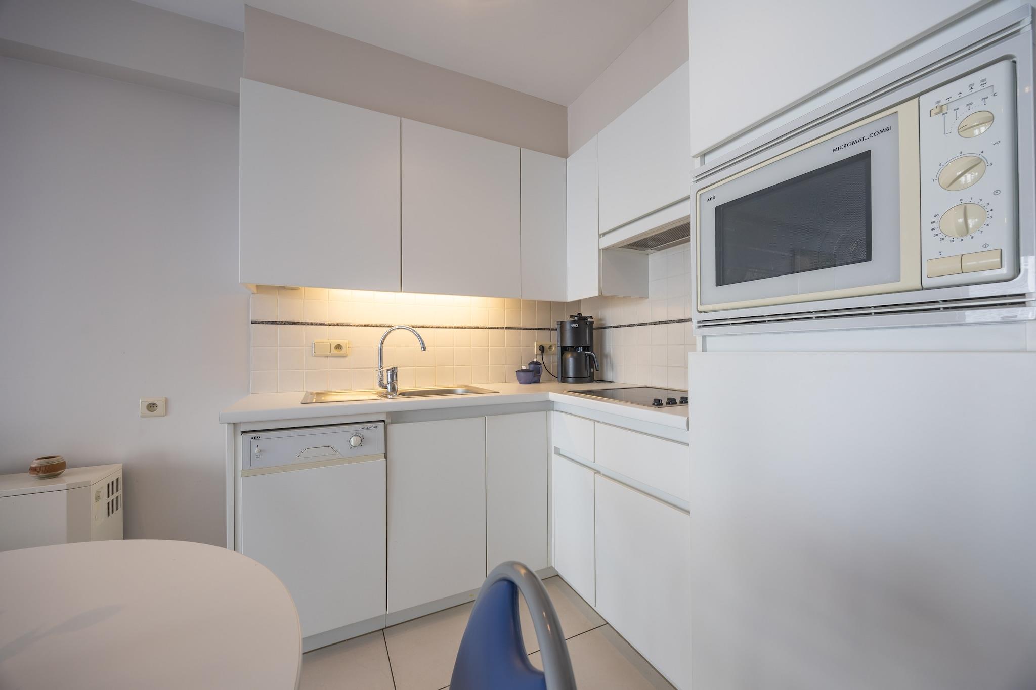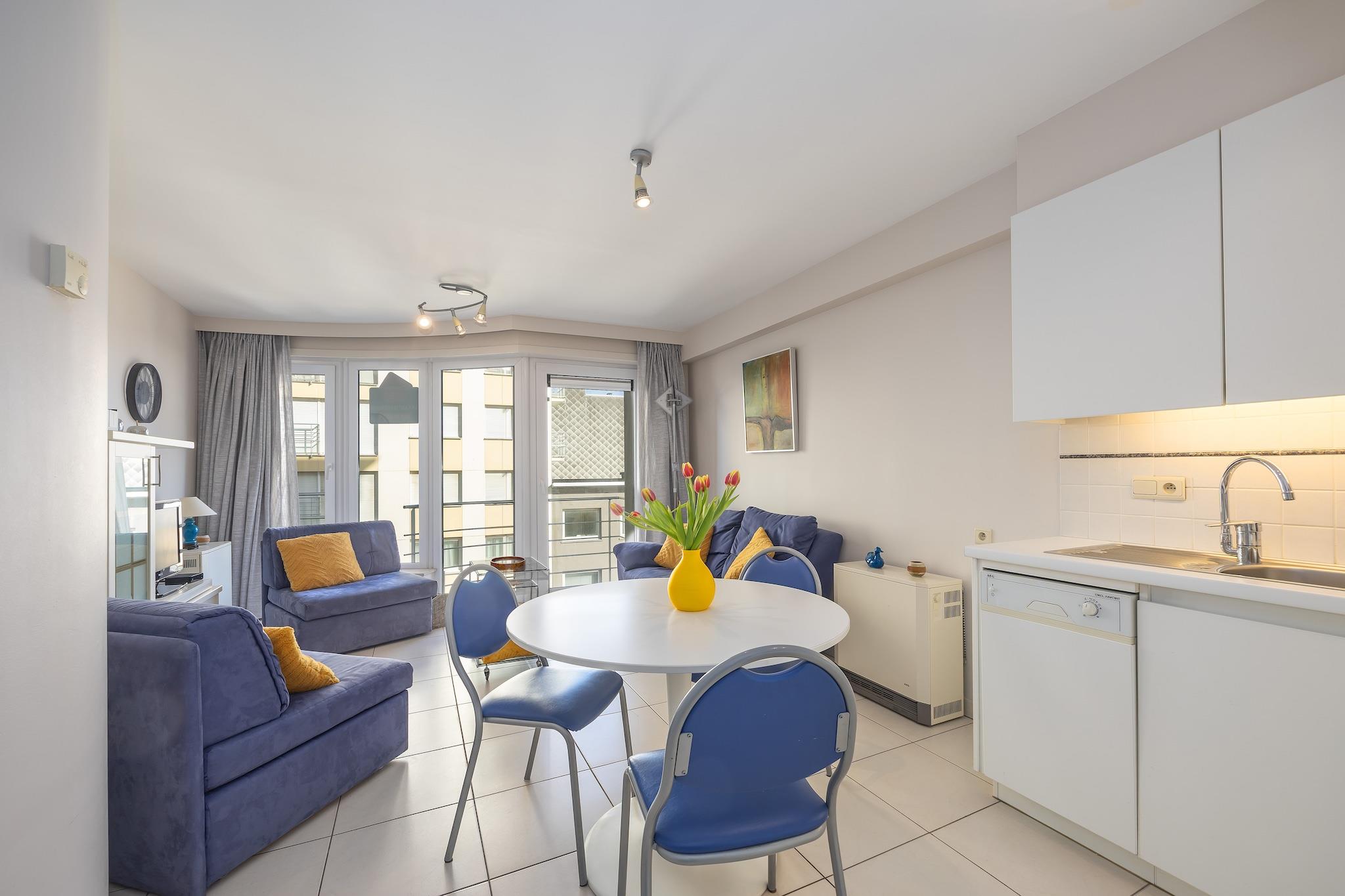 Charmerende ferie ved havet Flugt til denne lyse og indbydende lejlighed på 4. sal i Middelkerke, ideel for par eller små familier, der søger en kystferie. Lejligheden byder på et hyggeligt soveværelse med en dobbeltseng og en komfortabel stue med to enkeltsovesofaer - perfekt til børn eller ekstra gæster. Træd ud på den solbeskinnede terrasse med sideudsigt over havet, og nyd langsomme morgener med kaffe eller blæsende aftener, når solen går ned. Det åbne køkken er fuldt udstyret til ubesværede måltider, og badeværelset med bruser og toilet tilføjer moderne bekvemmelighed til dit ophold. Førsteklasses beliggenhed nær stranden og kasinoet Beliggende lige ved den ikoniske Zeedijk og kun 5 minutters gang fra det livlige Casinoplein, er du i hjertet af Middelkerkes charme. Tilbring dine dage på det gyldne sand, slentre den naturskønne promenade, eller hop på kystsporvognen for at udforske den belgiske kystlinje. Familievenlige attraktioner som Plopsaland og Bellewaerde er kun en kort køretur væk, mens kulturrige Brugge venter på en magisk dagstur. Caféer, køkken & kyststemning Forkæl dig selv med belgiske pommes frites, frisk fisk og skaldyr eller en sød vaffel på en af de mange nærliggende restauranter og caféer. Uanset om du nyder muslinger med havudsigt eller snupper en snack mellem eventyrene, har Middelkerkes livlige spisescene noget for enhver smag. Efter middagen kan du vende tilbage til din fredelige lejlighed - din fredfyldte base ved havet.