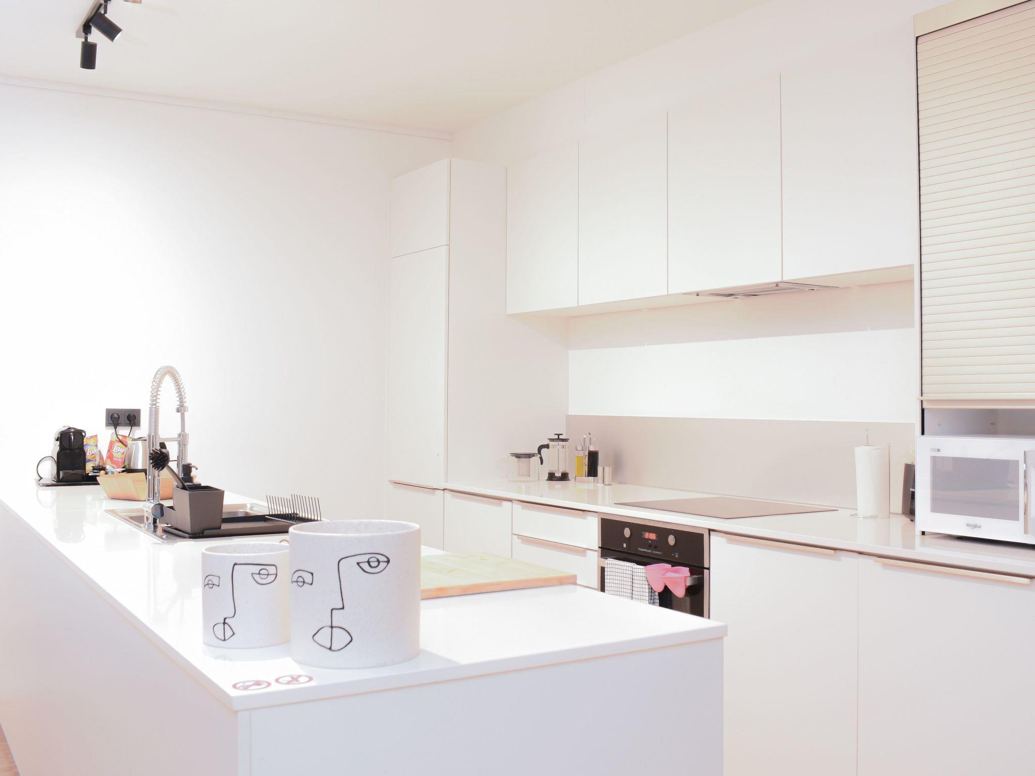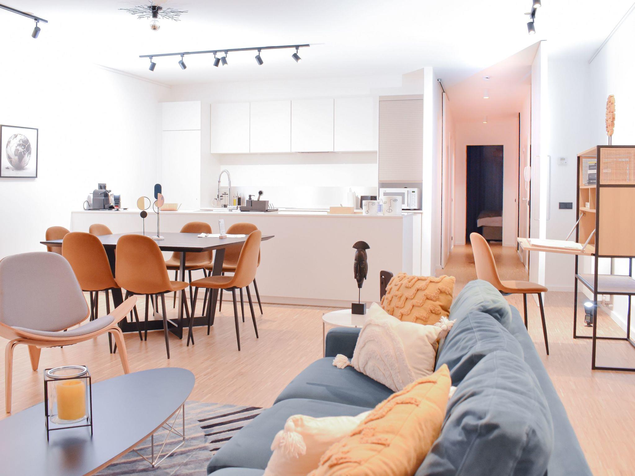 Within the apartment, two bathrooms are thoughtfully placed to provide ease and convenience. The larger bathroom features both a bathtub and a walk-in shower, catering to your relaxation needs, while the second bathroom is equipped with a shower cabin, washbasin, and toilet. Additionally, a separate guest toilet with a wash basin ensures the comfort and convenience of all guests, making every aspect of your stay as pleasant and effortless as possible.