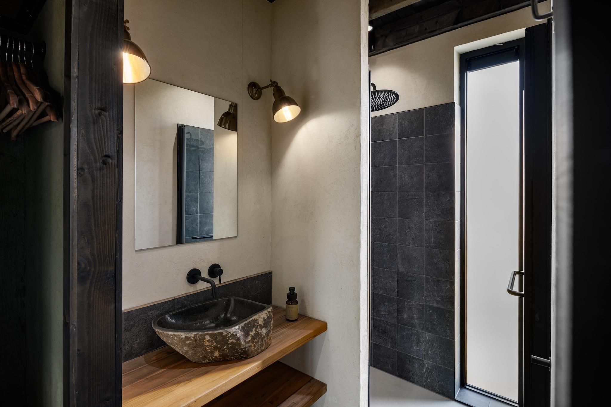 Stueetage: (entre(toilet), Stue(Fjernsyn(Smart-TV)), åbent køkken(elkedel, kaffemaskine(kopper), ovn, mikrobølgeovn, opvaskemaskine , køle-fryseskab), Soveværelse med badeværelse(dobbeltseng eller 2 enkeltsenge Senge, bruser(Walk-in-bruser), håndvask), Soveværelse med badeværelse(dobbeltseng eller 2 enkeltsenge Senge, bruser(Walk-in-bruser), infrarød sauna, håndvask)) havedøre, klimaanlæg, terrasse(overdækket), havemøbler, havepejs