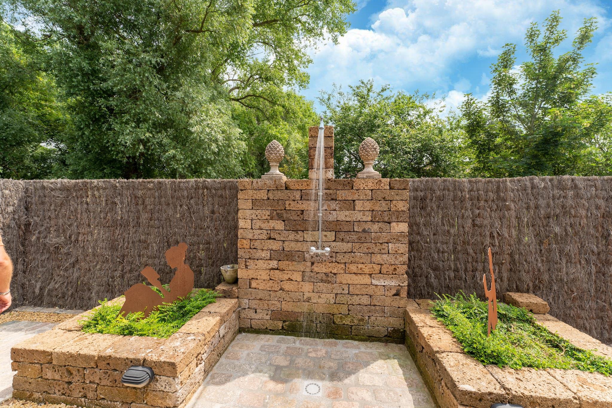 Stueetage: (Køkken(kogeplade(glaskeramisk), elkedel, espressomaskine, combi-mikroovn, opvaskemaskine , køleskab, Stavblender), stue / spisestue(Fjernsyn, spisebord, pejs, sofahjørne, barnestol), soveværelse(dobbeltseng, tremmeseng), badeværelse(badekar, bruser, håndvask, håndvask), toilet(toilet), bryggers(køleskab)) På 1. etage: (soveværelse(dobbeltseng), soveværelse(dobbeltseng, dobbeltfeltseng), soveværelse(dobbeltseng), badeværelse(badekar med bruser, håndvask), toilet(toilet), opholdsrum(sofahjørne, bar, dart)) kaffemaskine, badekar, hottub, bruser, bruser, sauna, terrasse, have, cykelopbevaring, havemøbler, solstole, grill, parkering, dam, liggestole, Parasol, strygebræt, loungemøbler, havepejs