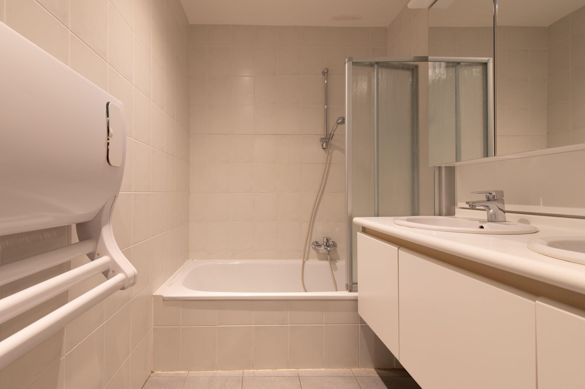 Denne stilfulde, nybyggede lejlighed med to soveværelser kombinerer moderne komfort med en uovertruffen beliggenhed ved havet. Beliggende på en stille sidegade, kun få skridt fra floddæmningen og tæt på et indkøbscenter, ligger den på 6. sal og kan prale af en solrig terrasse på cirka 5 m² med vidtstrakt havudsigt, perfekt til afslapning om eftermiddagen. Det lyse, allergivenlige interiør er fuldstændig tæppefrit og røgfrit, hvilket skaber et friskt og indbydende rum. Stuen åbner direkte ud til terrassen og er udstyret med digital-tv, et lydsystem, en digital optager, en dvd-afspiller og højhastigheds-Wi-Fi, perfekt til både afslapning og underholdning. Det åbne køkken er fuldt udstyret med induktionskogeplade, kombiovn, køleskab med fryser, opvaskemaskine, elkedel, brødrister, blender og Dolce Gusto- og drypkaffemaskine, hvilket gør den ideel til alt fra hurtig morgenmad til gourmetmiddage. To hyggelige soveværelser tilbyder komfortabel indkvartering: en dobbeltseng med en stor dyne i soveværelset og en robust køjeseng med separate dyner i det andet soveværelse, perfekt til børn eller ekstra gæster. Badeværelset har badekar med bruser, dobbelt håndvask og hårtørrer, mens et separat toilet med håndvask giver ekstra bekvemmelighed. Beliggenheden er en sand fordel – kun en kort gåtur fra stranden, klitterne og det historiske Fort Napoleon, og Oostendes pulserende centrum kan nås med en gratis færge. Der er gratis parkering i de omkringliggende gader, og lokale butikker, caféer og restauranter ligger inden for rækkevidde. Uanset om du vil udforske kysten, slappe af på terrassen i havbrisen eller tage på dagsture rundt i regionen, er denne lejlighed den perfekte base for en afslappende og velbeliggende ferie ved havet.